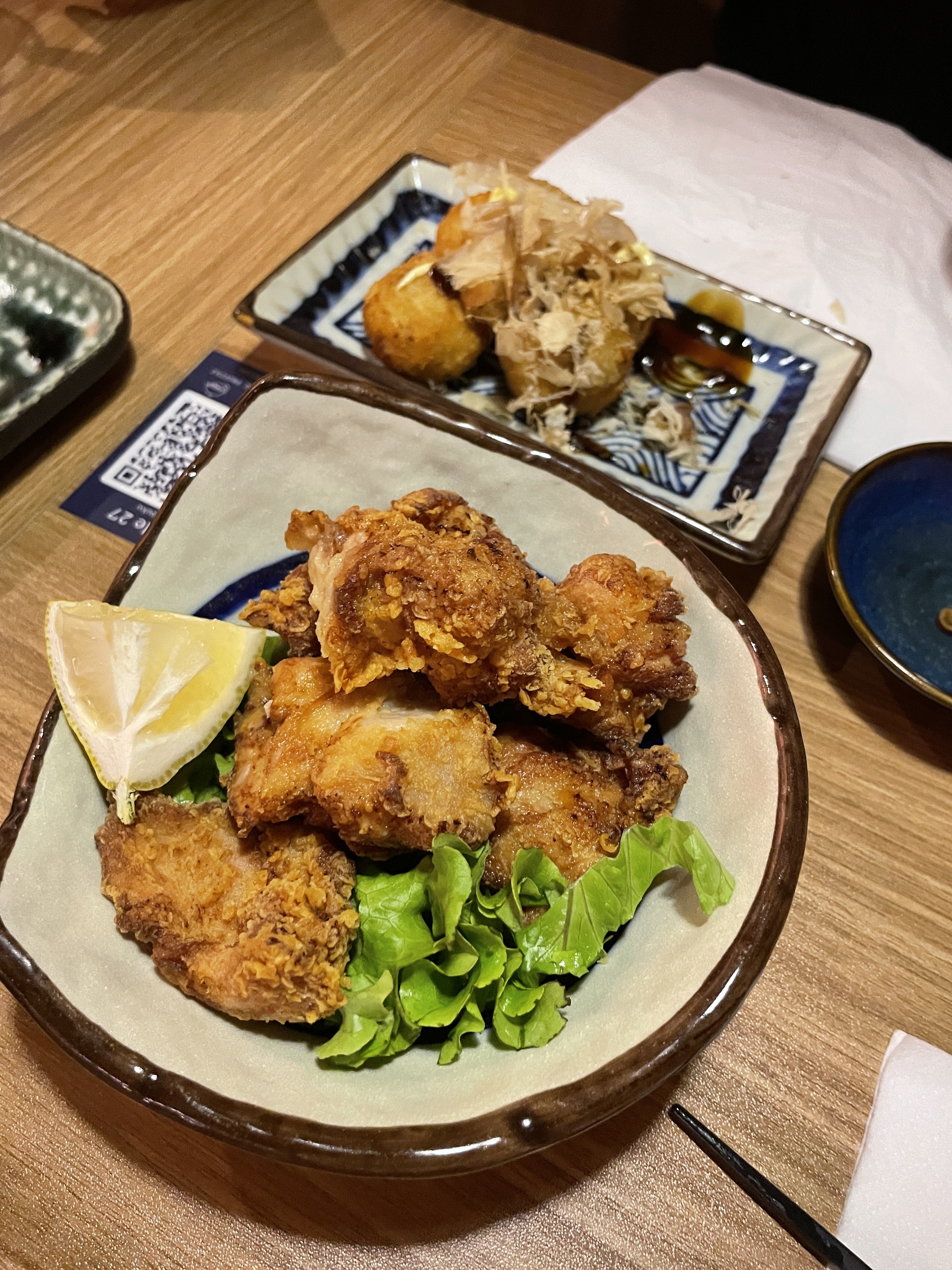 Le sashimi est très frais, et le poulet frit est très tendre et juteux. Les takoyaki sont les meilleurs que j'aie jamais mangées.