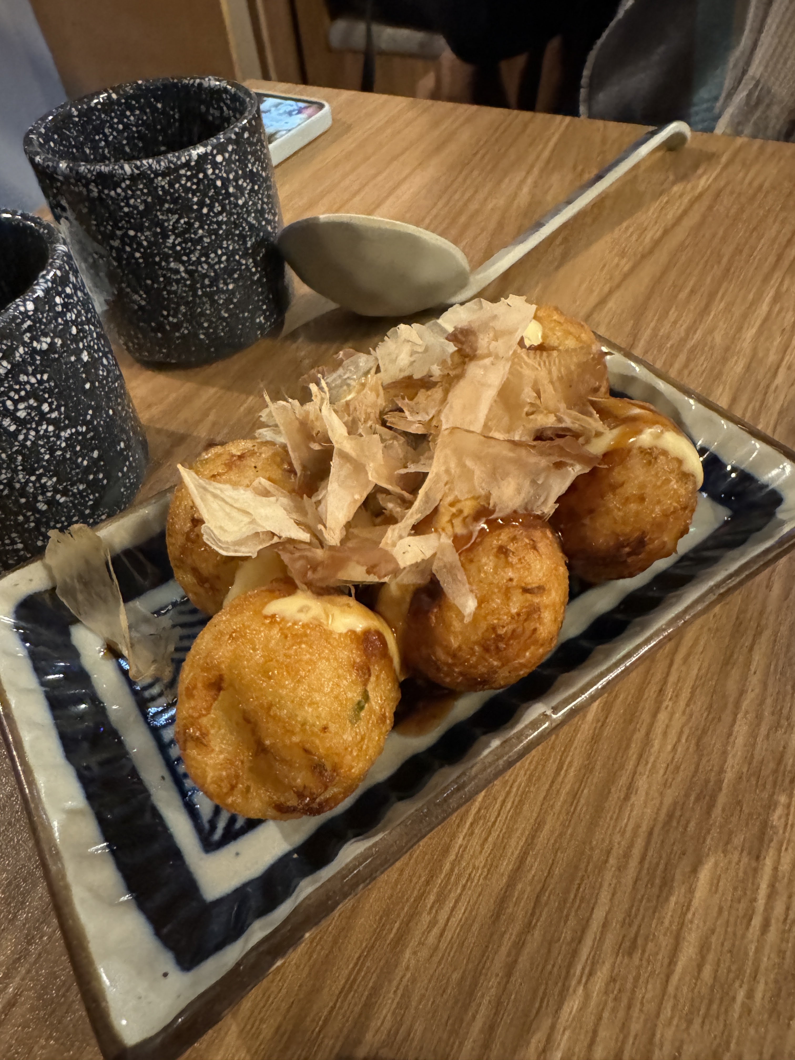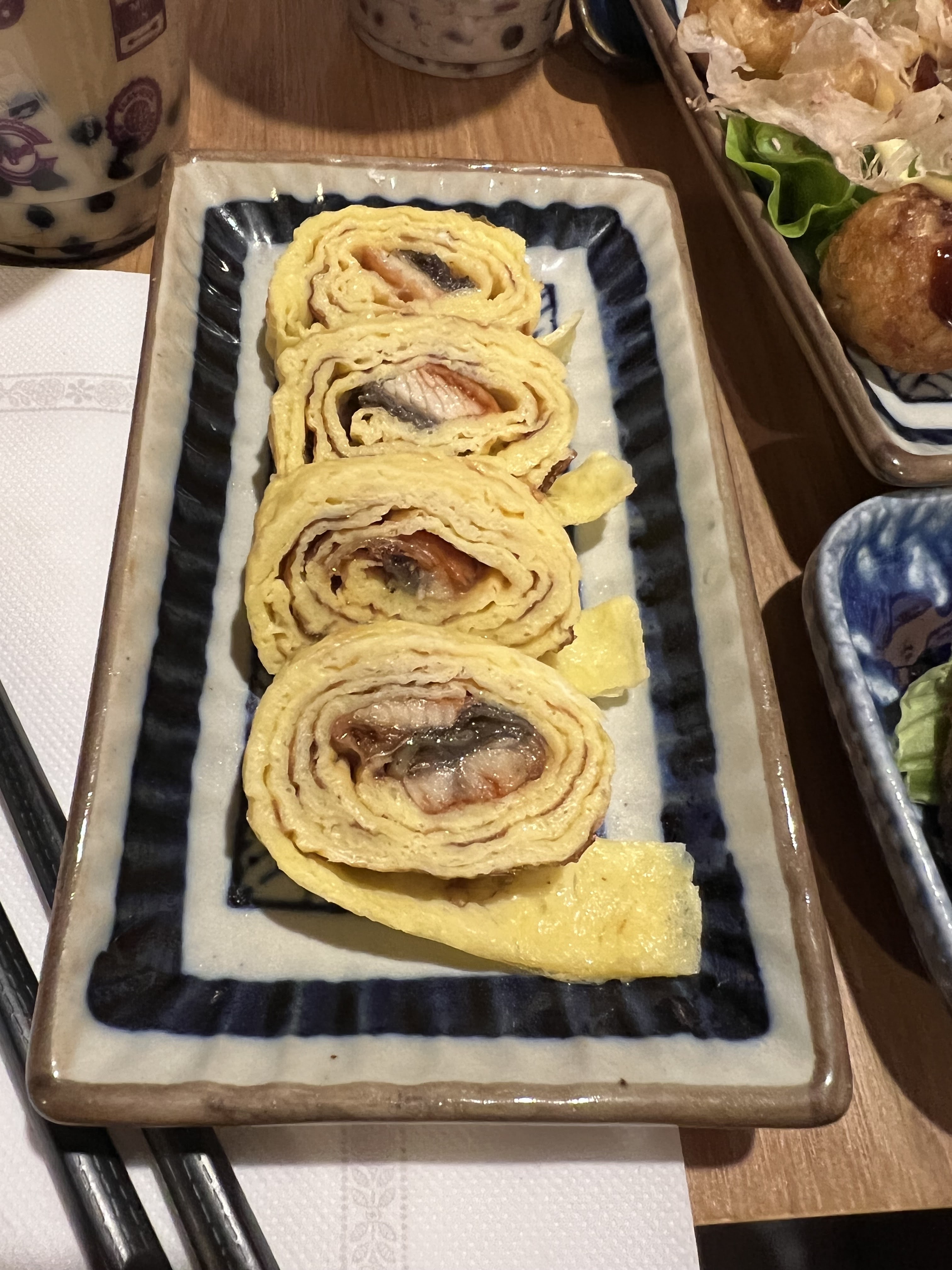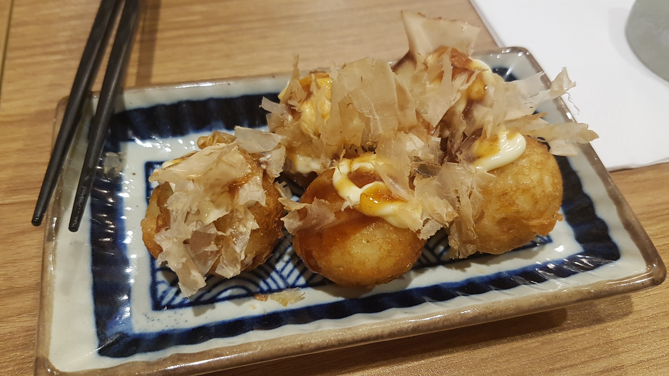 Je recommande les boulettes de poulpe. Néanmoins c’était des œufs pochés et non pas des tamago… Mais sinon c’était très bon