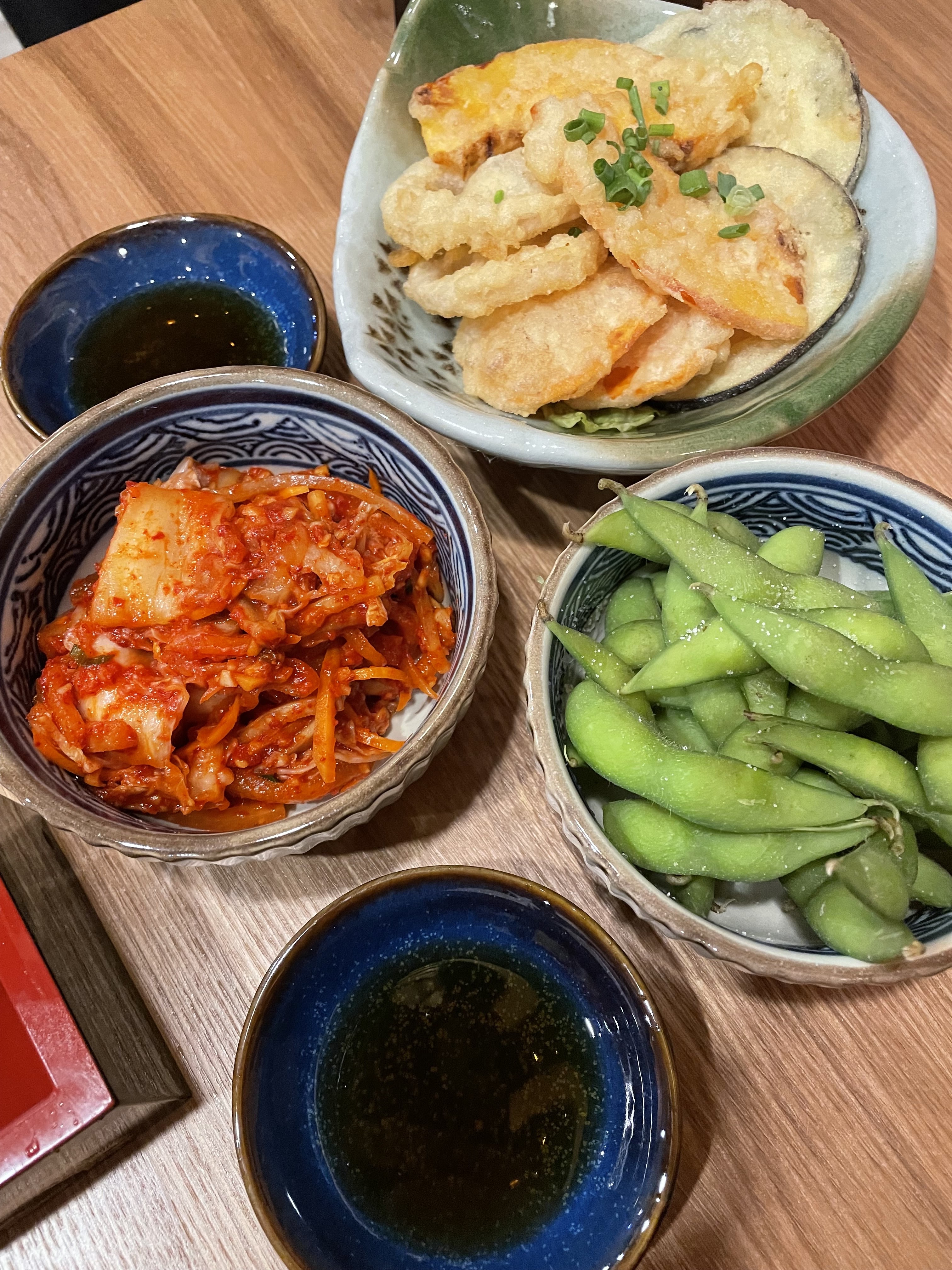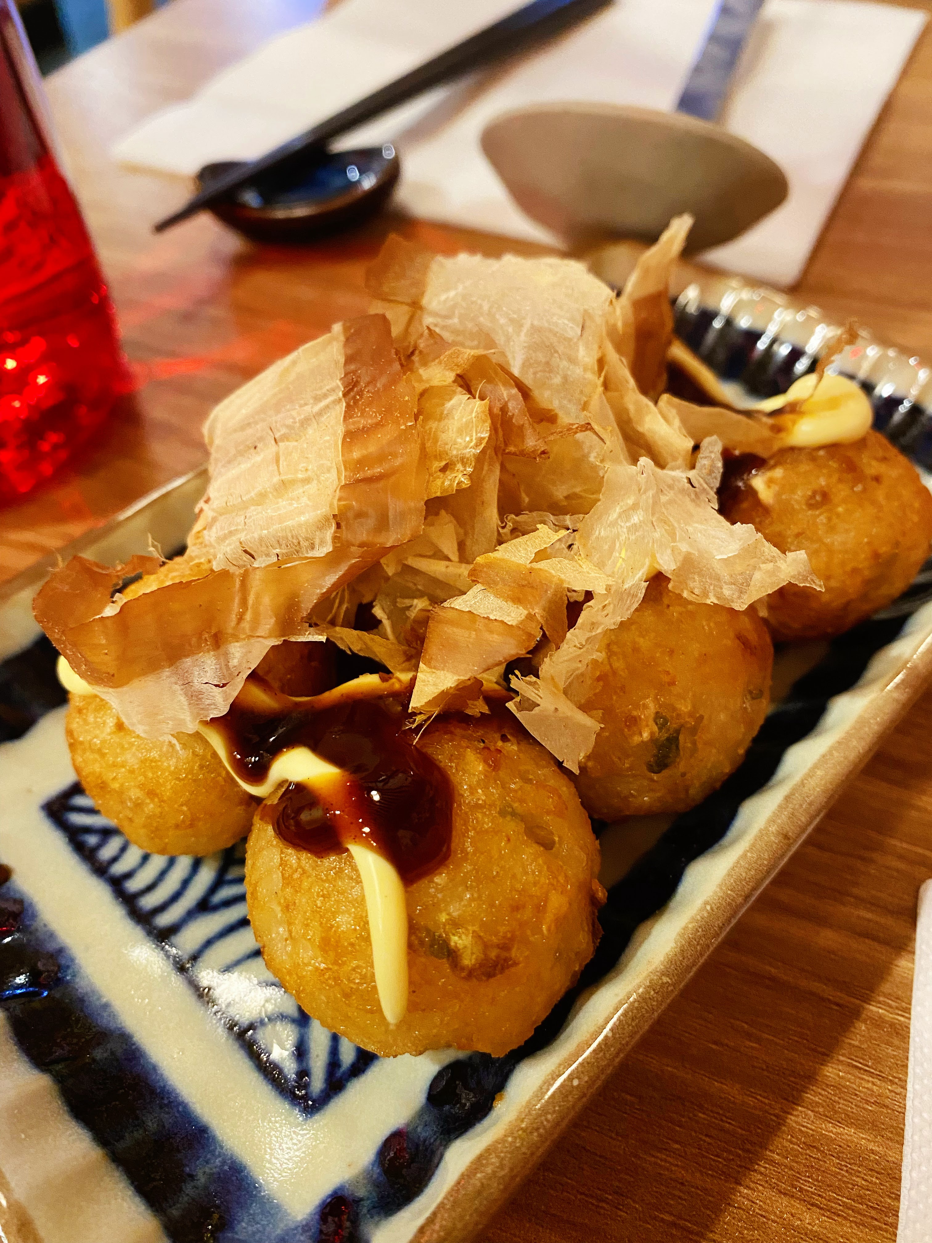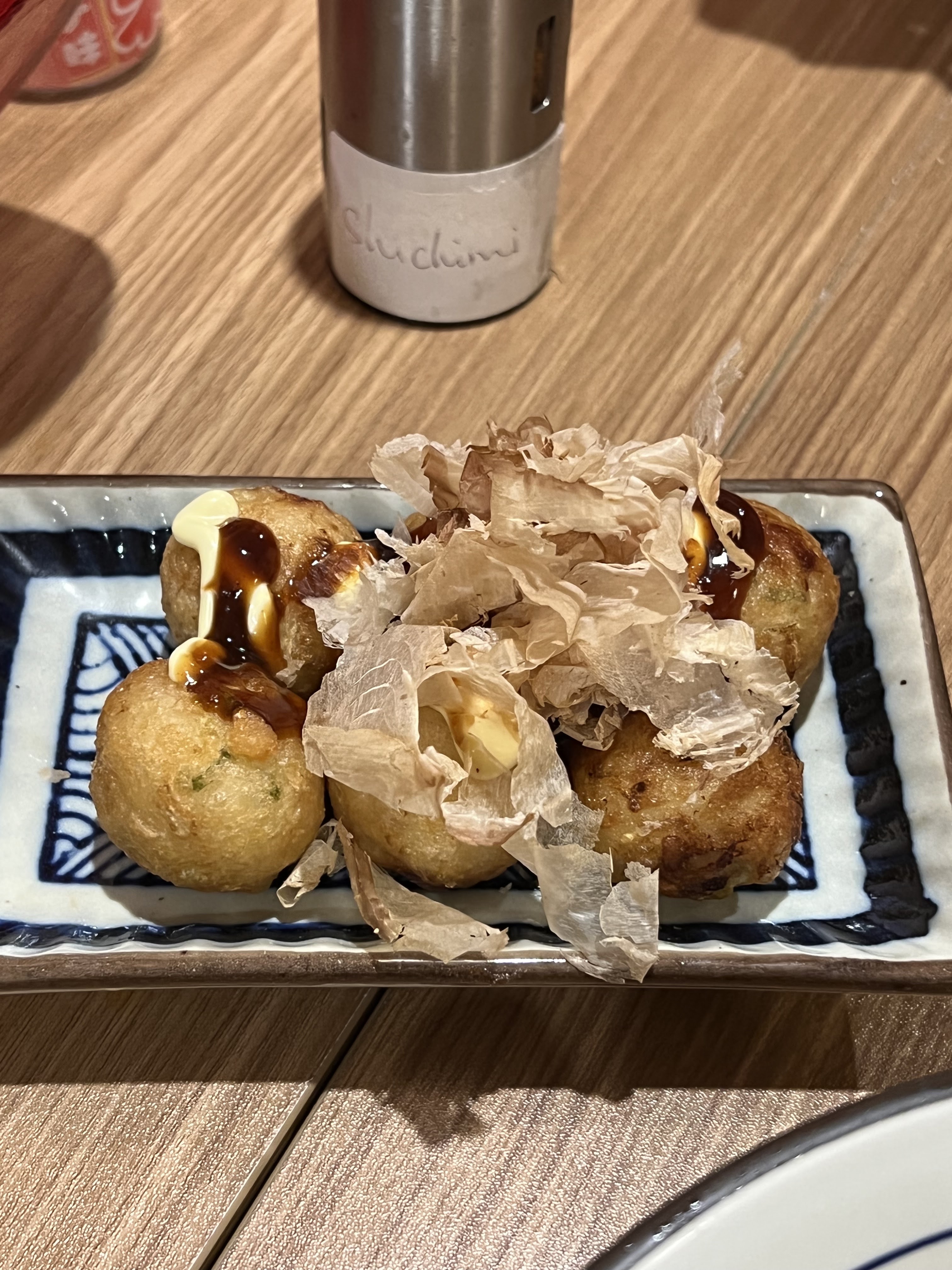 Je recommande les boulettes de poulpe. Néanmoins c’était des œufs pochés et non pas des tamago… Mais sinon c’était très bon
