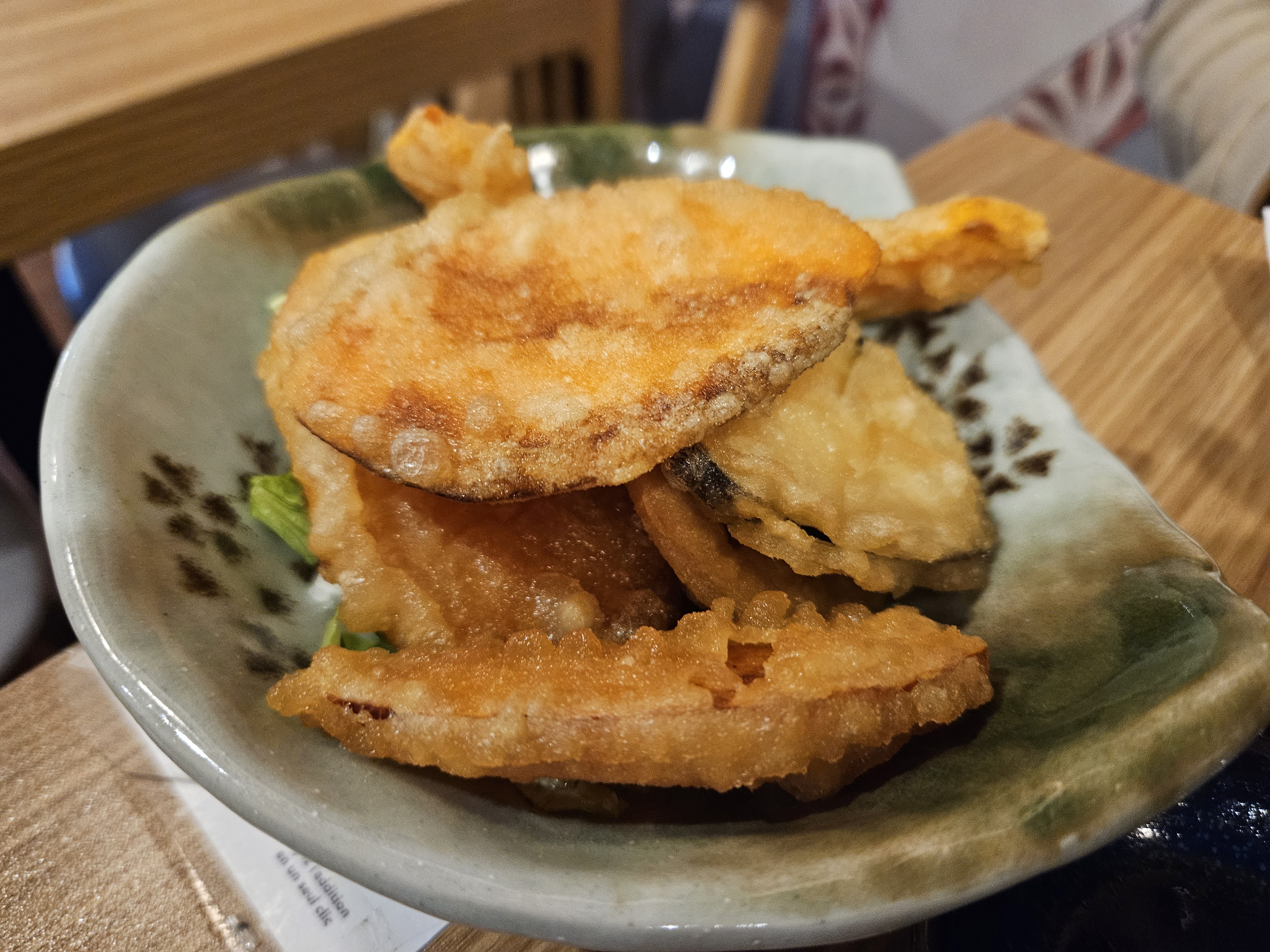 Le cadre est chaleureux et les personnels sont toujours à disposition. Toutefois, les plats sont plutôt basiques et certains manquent d'assaisonnement. -Les tempura aux crevettes sont bien croustillant mais manque du goût! - Les udons sauté est bien assaisonné même si ce plat me fais plus pensé à une cuisine chinoise. - la soupe d'udon au filet de poulet. Le bouillon manque du gout mais les filet de poulet sont tendre et agréable à manger.