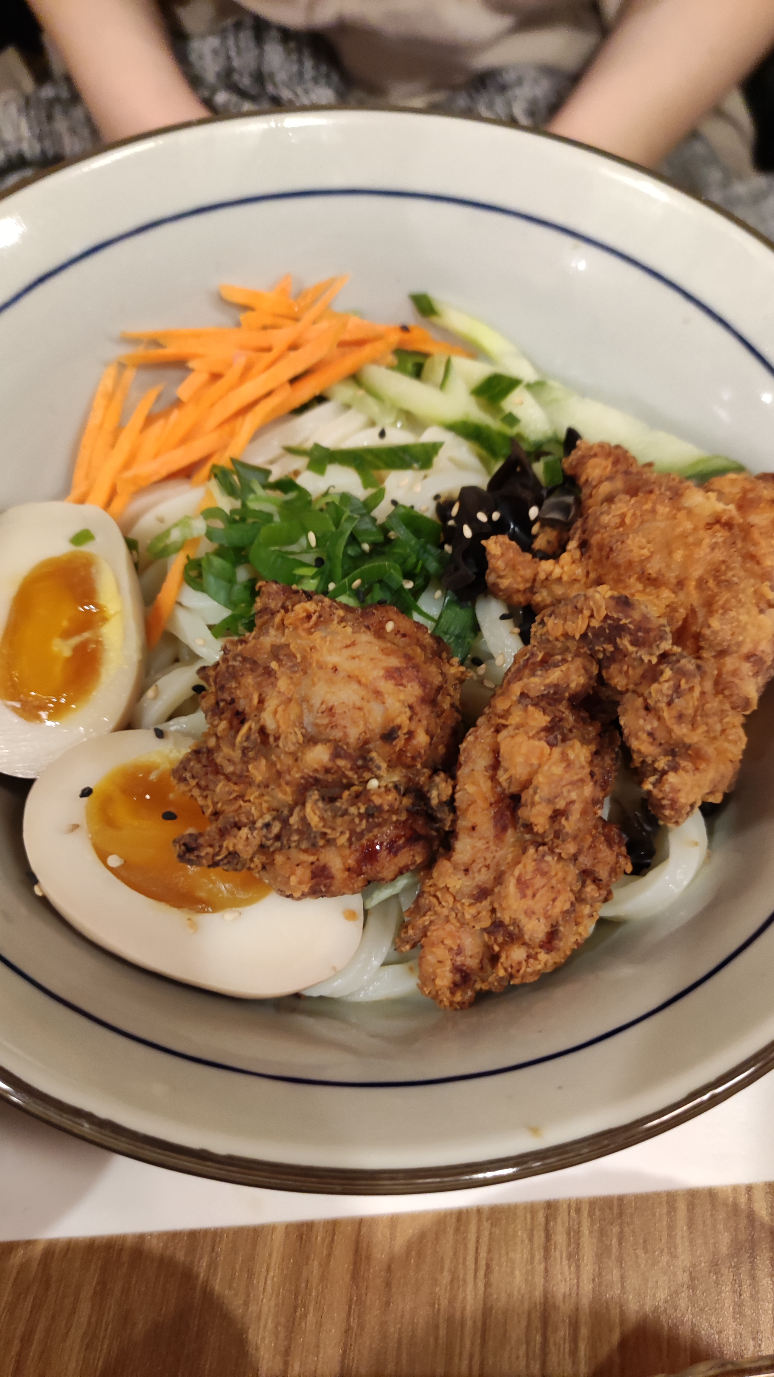 Le udon froid au poulet frit vraiment rafraîchissant pour l’été ! Les udons sont faits maison vraiment succulents