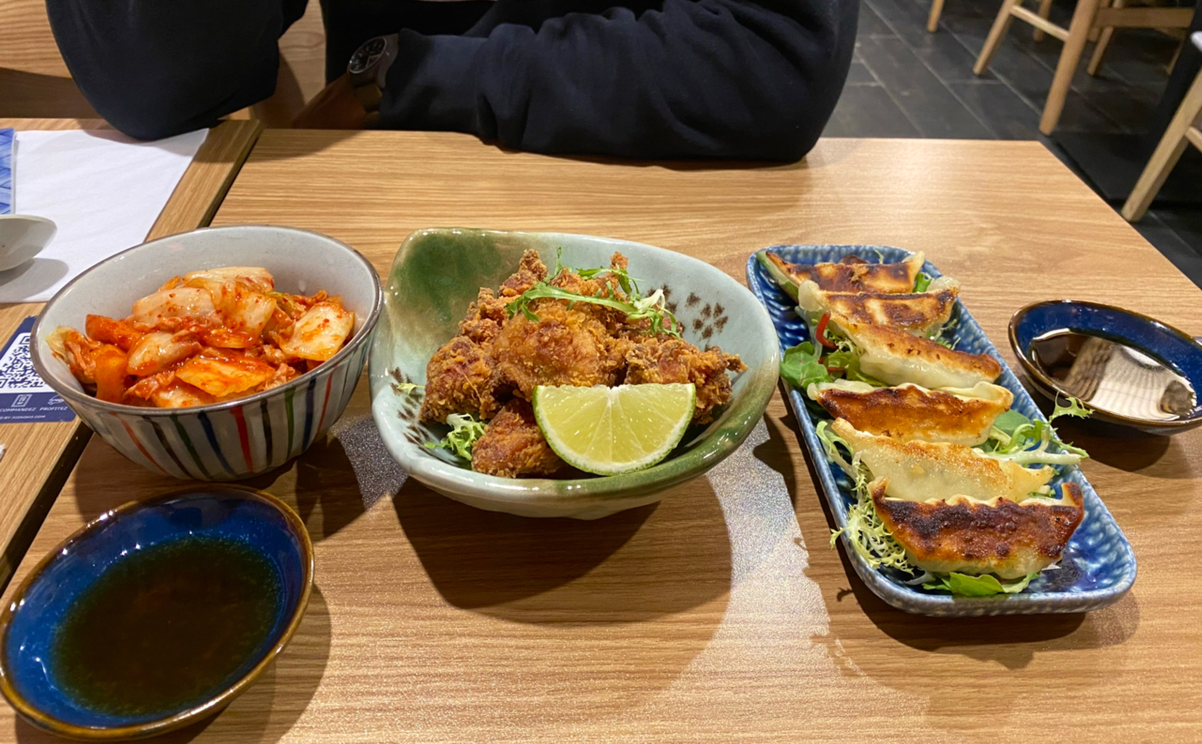 Resto pas mal pour un resto japonais tenu par des chinois mais vraiment loin du voisin ippudo Salade cuite inutile sous les gyozas Gyozas très bof et potentiellement industriels Bouillon des ramens fades On est pas loin d’un bon resto japonais mais ça reste la version wish