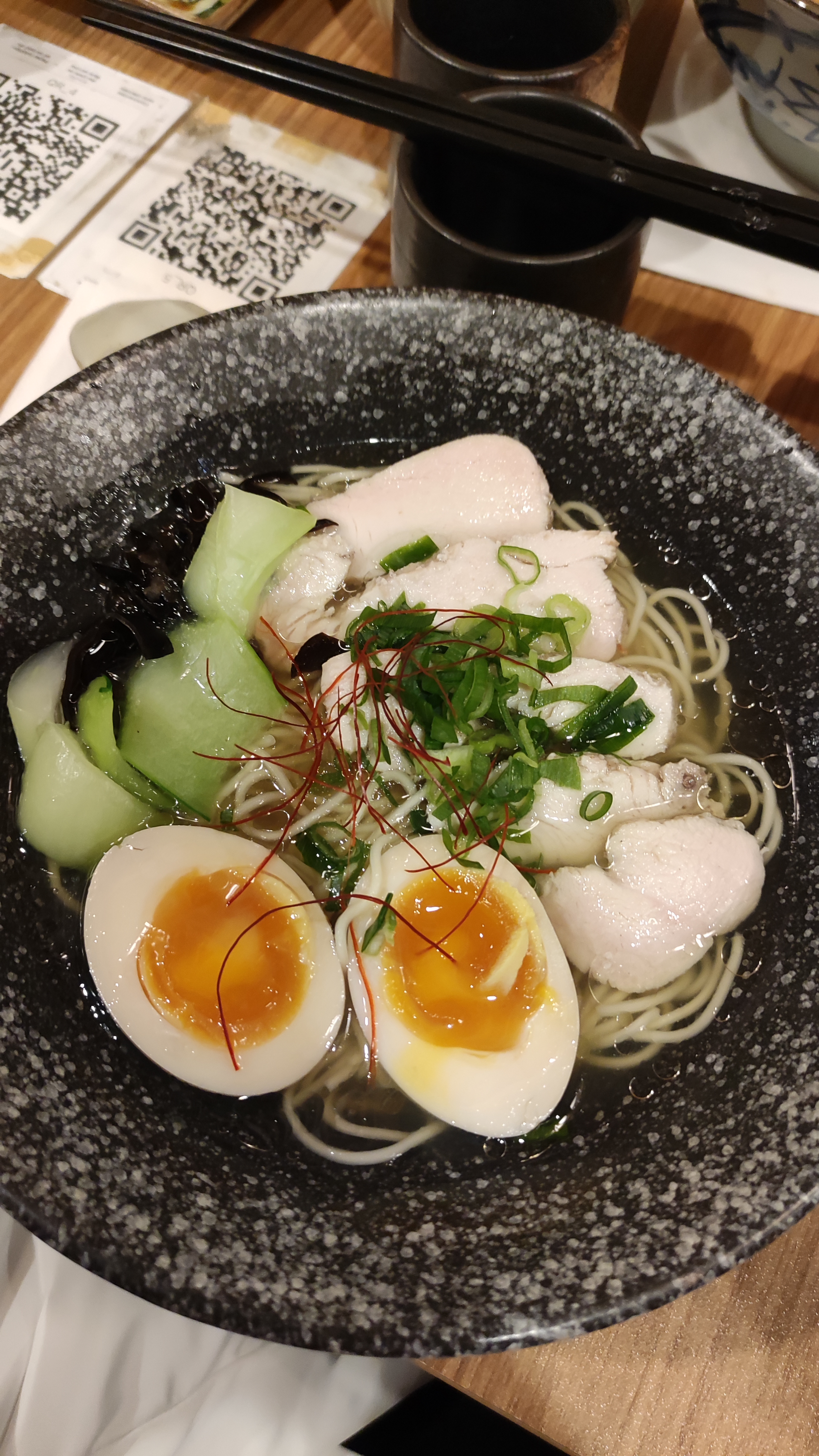 Pour le prix, nous nous attendions à des ramens avec plus de gouts. Le poulet était toujours congelé, le bouillon insipide. Dommage, le restaurant est sympa!