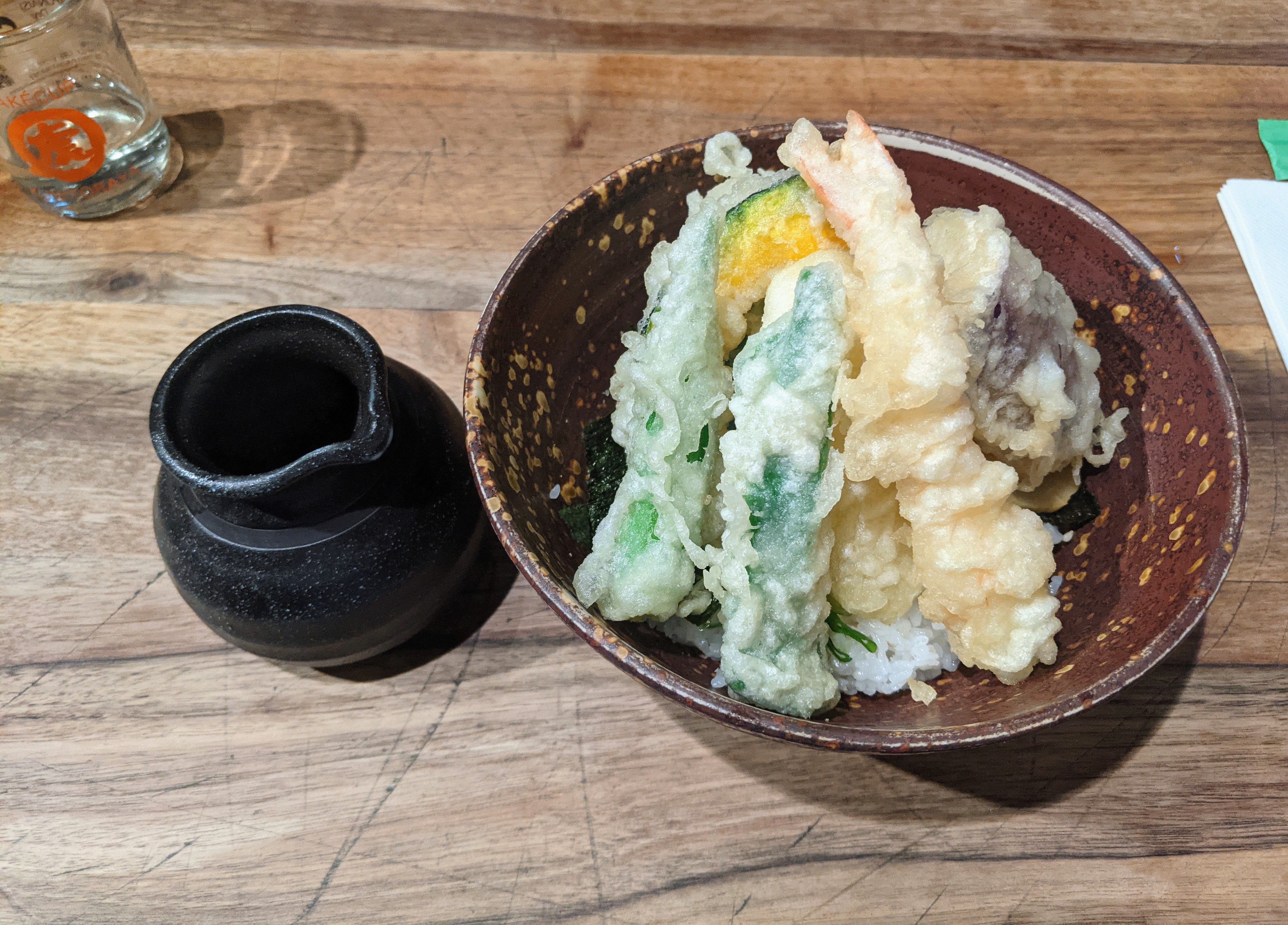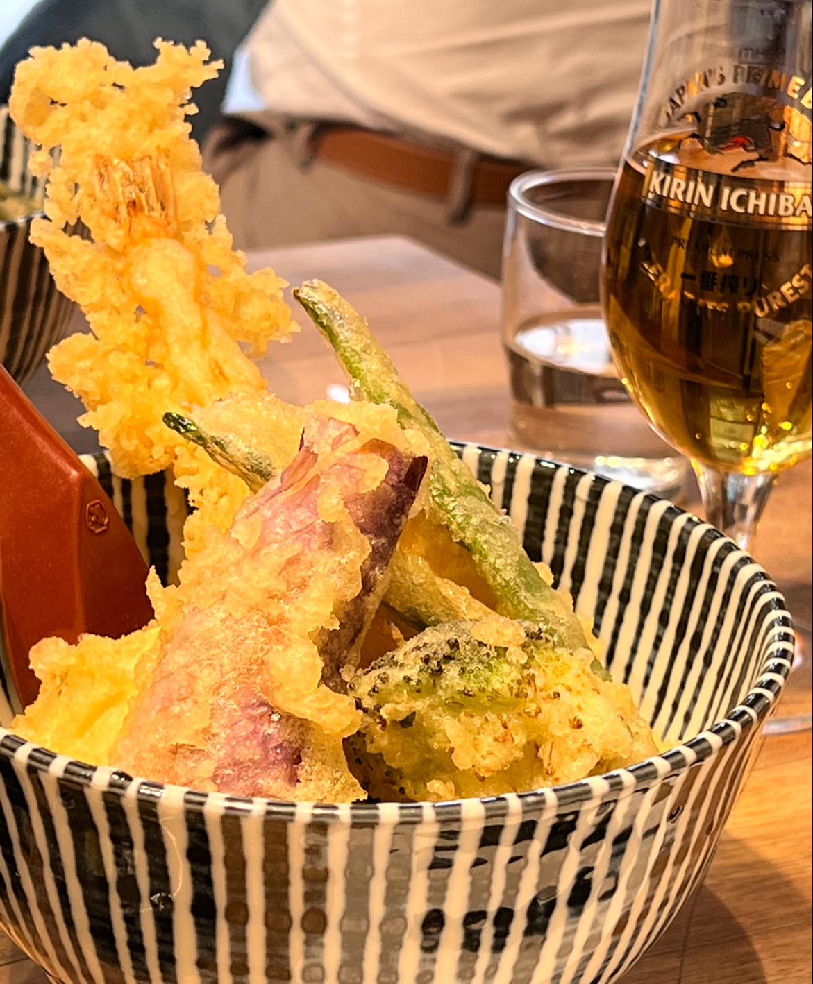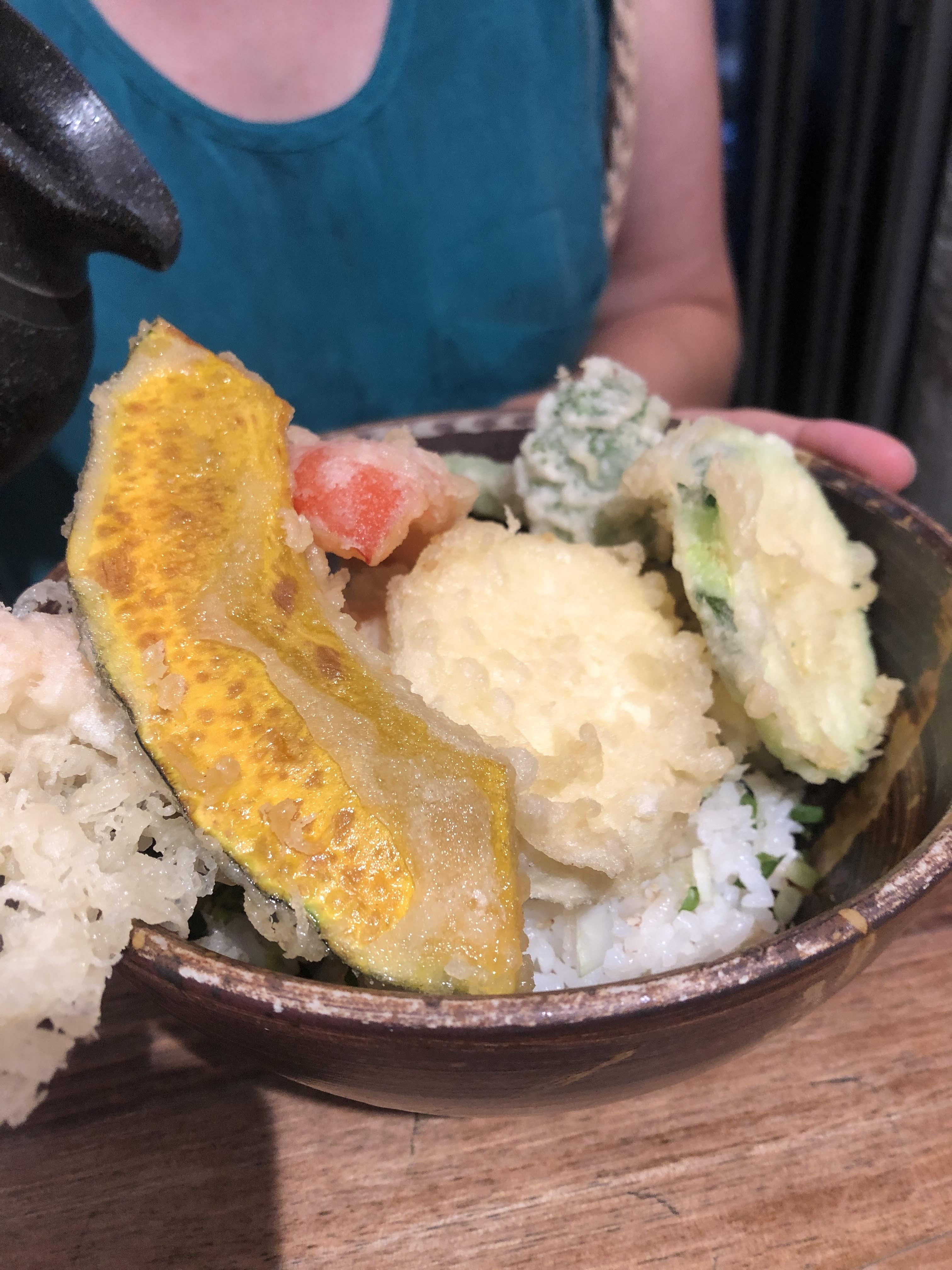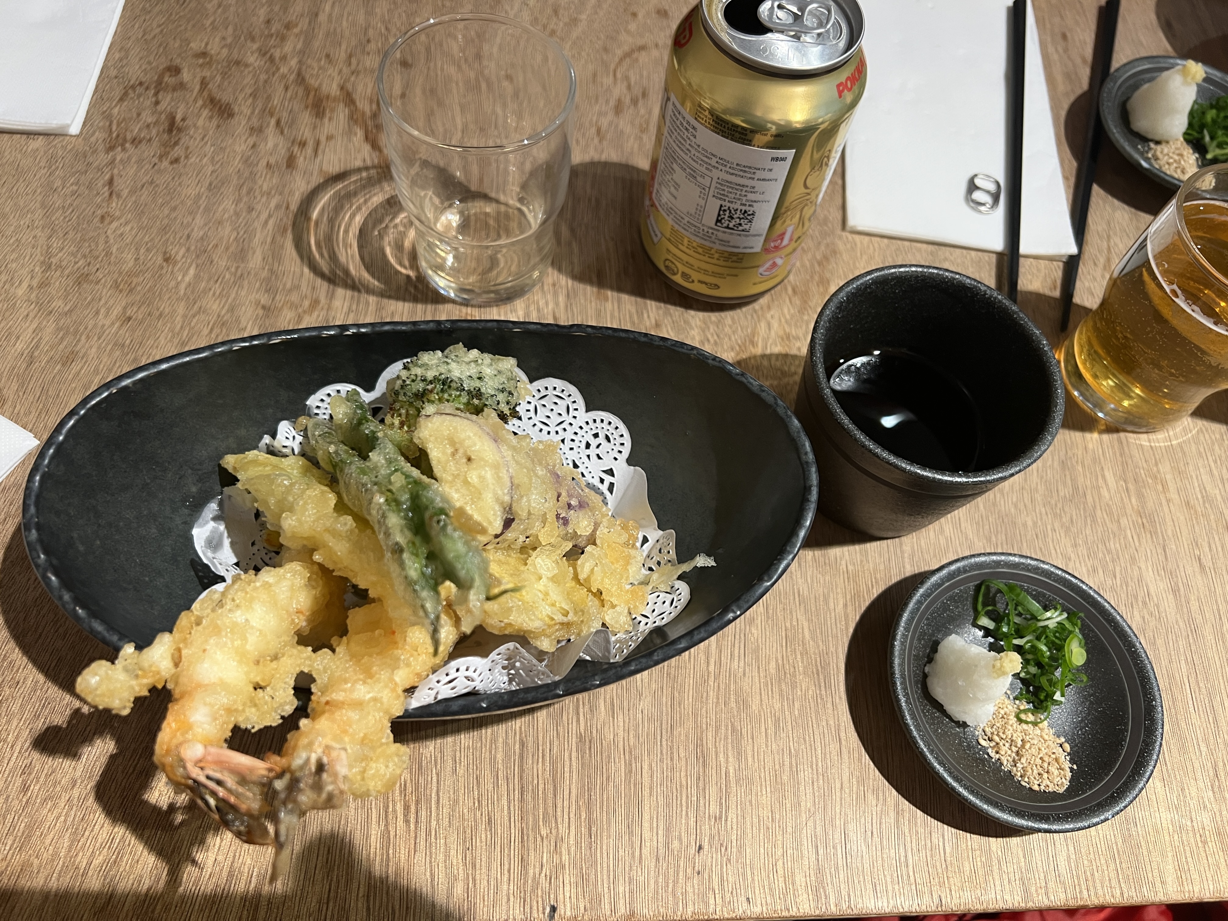 J’ai pris des tempuras de légumes avec du riz, c’était bon mais sans plus. Je trouve le restaurant très cher pour ce que c’est. D’autant plus que l’on est assis sur des tabourets un peu bas et sur des tables très proches les unes des autres. Bonus : j’ai été malade.