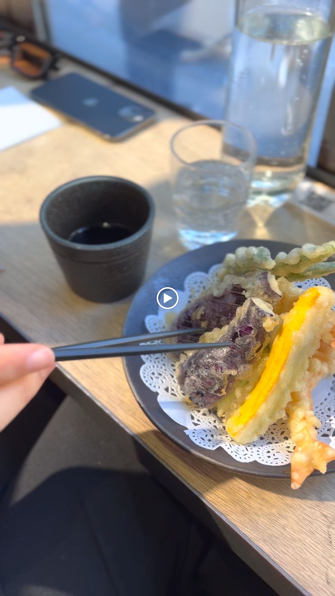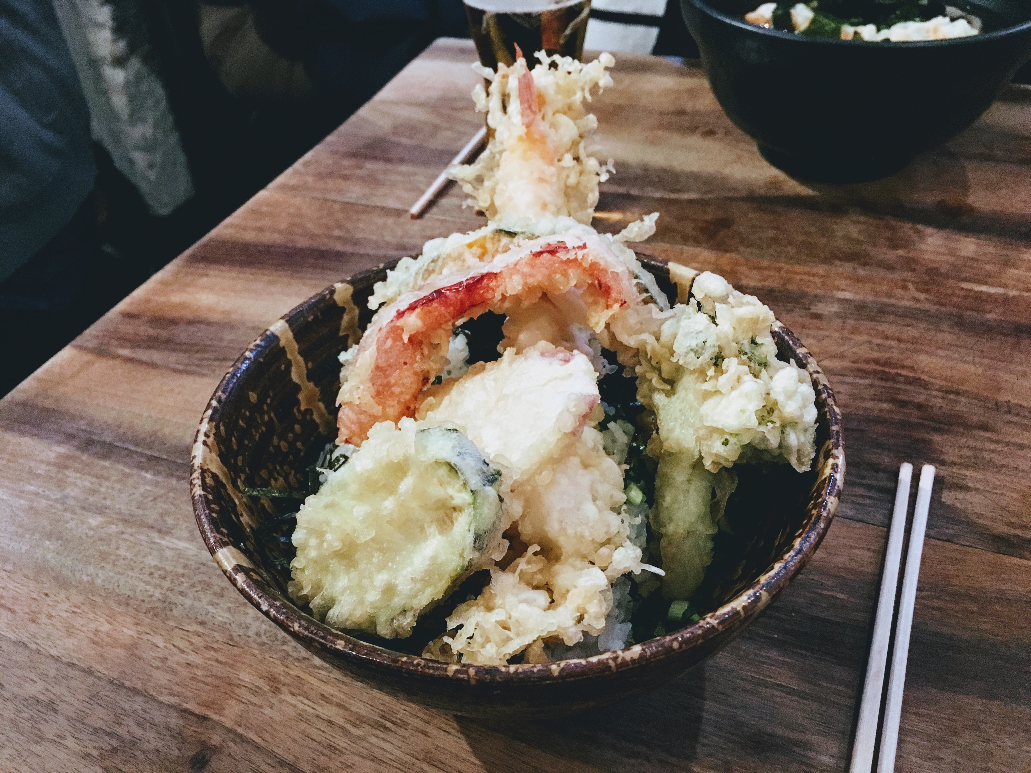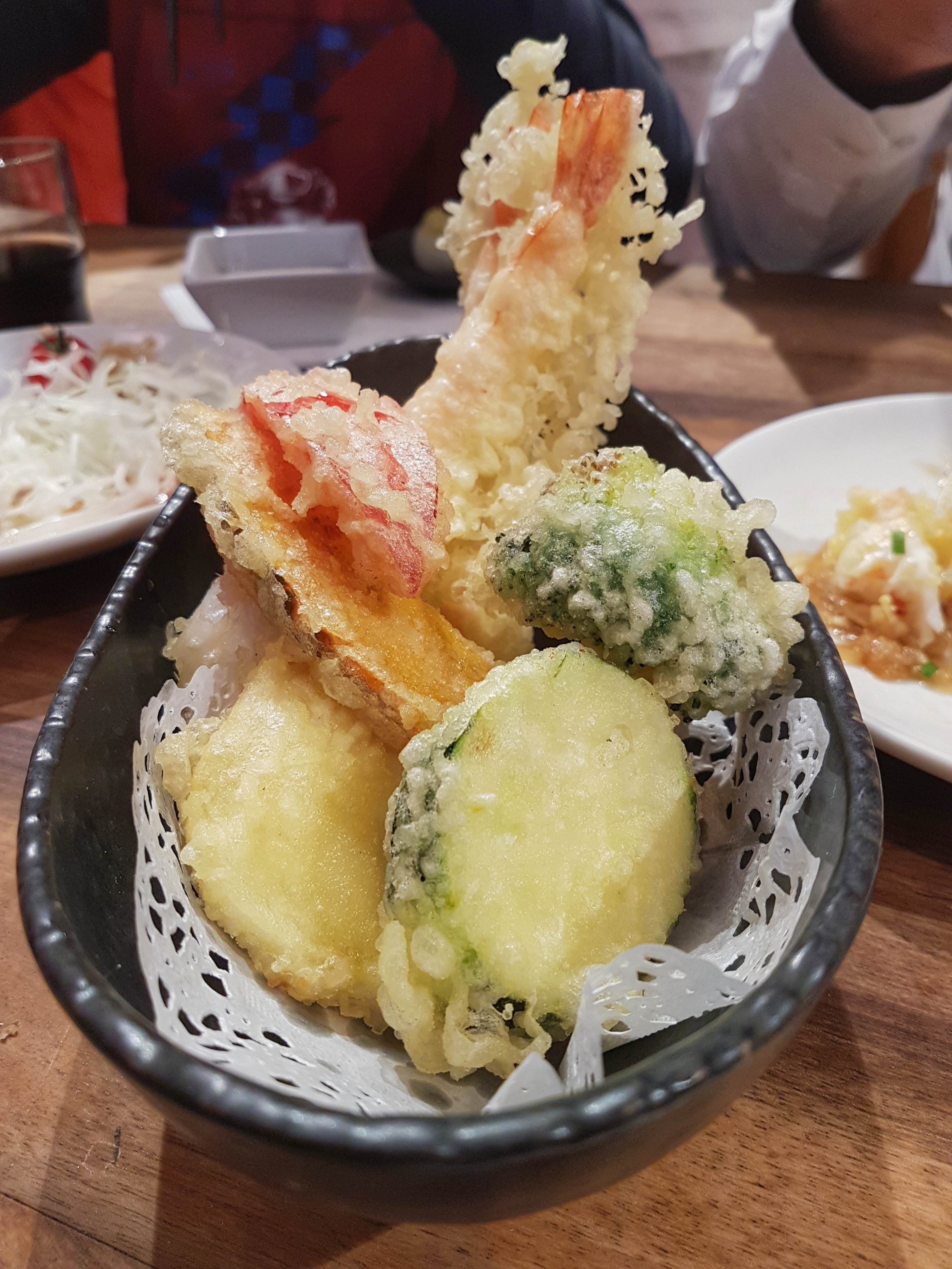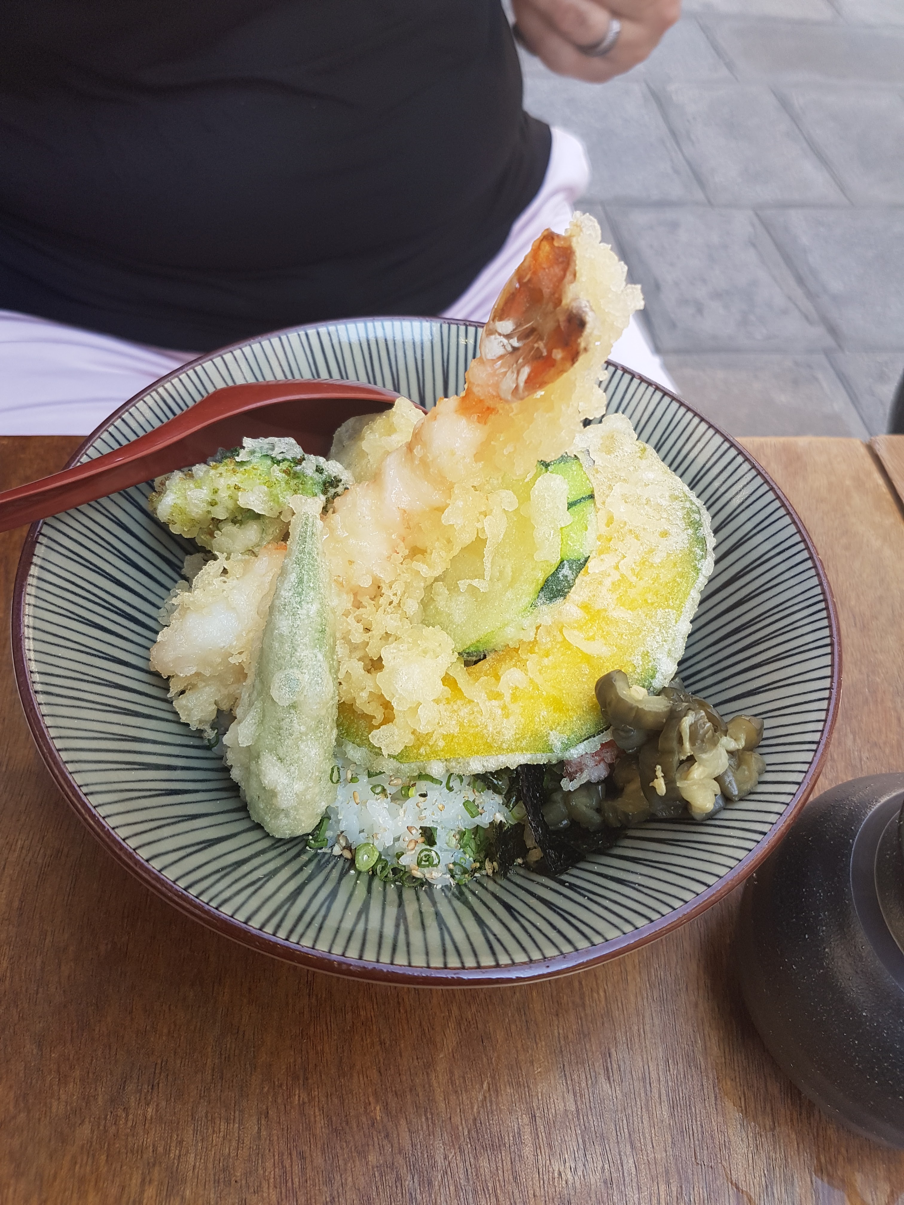 J’ai pris des tempuras de légumes avec du riz, c’était bon mais sans plus. Je trouve le restaurant très cher pour ce que c’est. D’autant plus que l’on est assis sur des tabourets un peu bas et sur des tables très proches les unes des autres. Bonus : j’ai été malade.