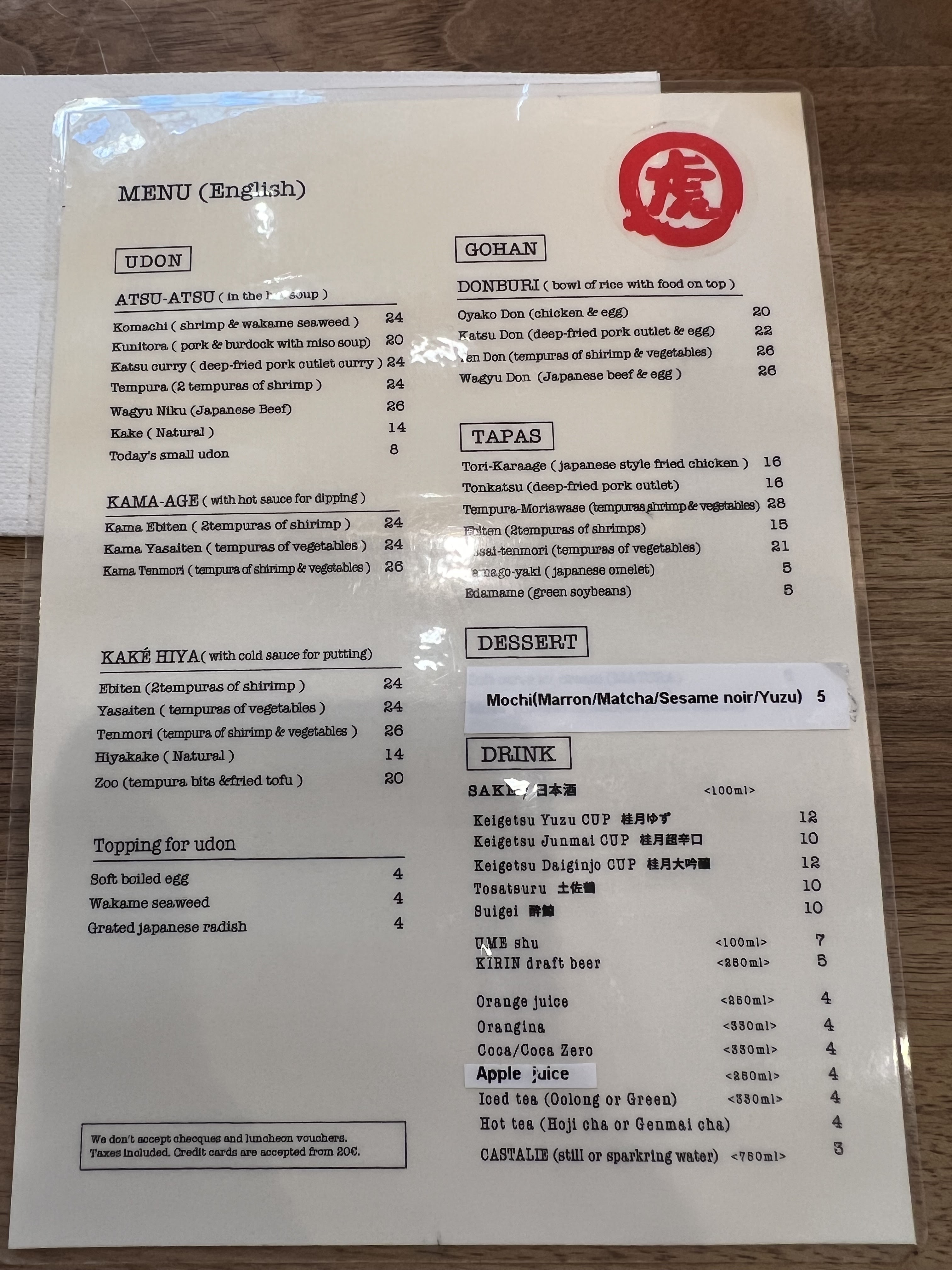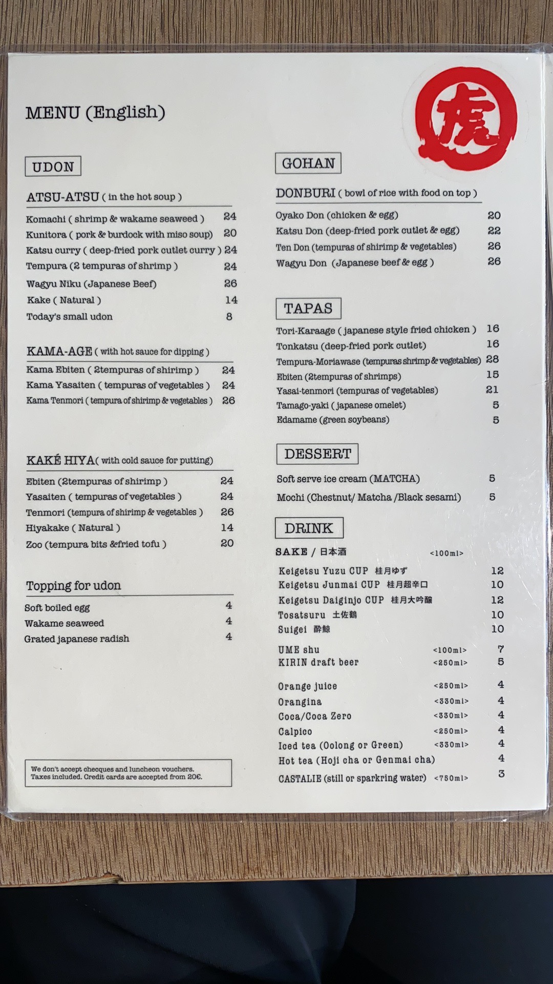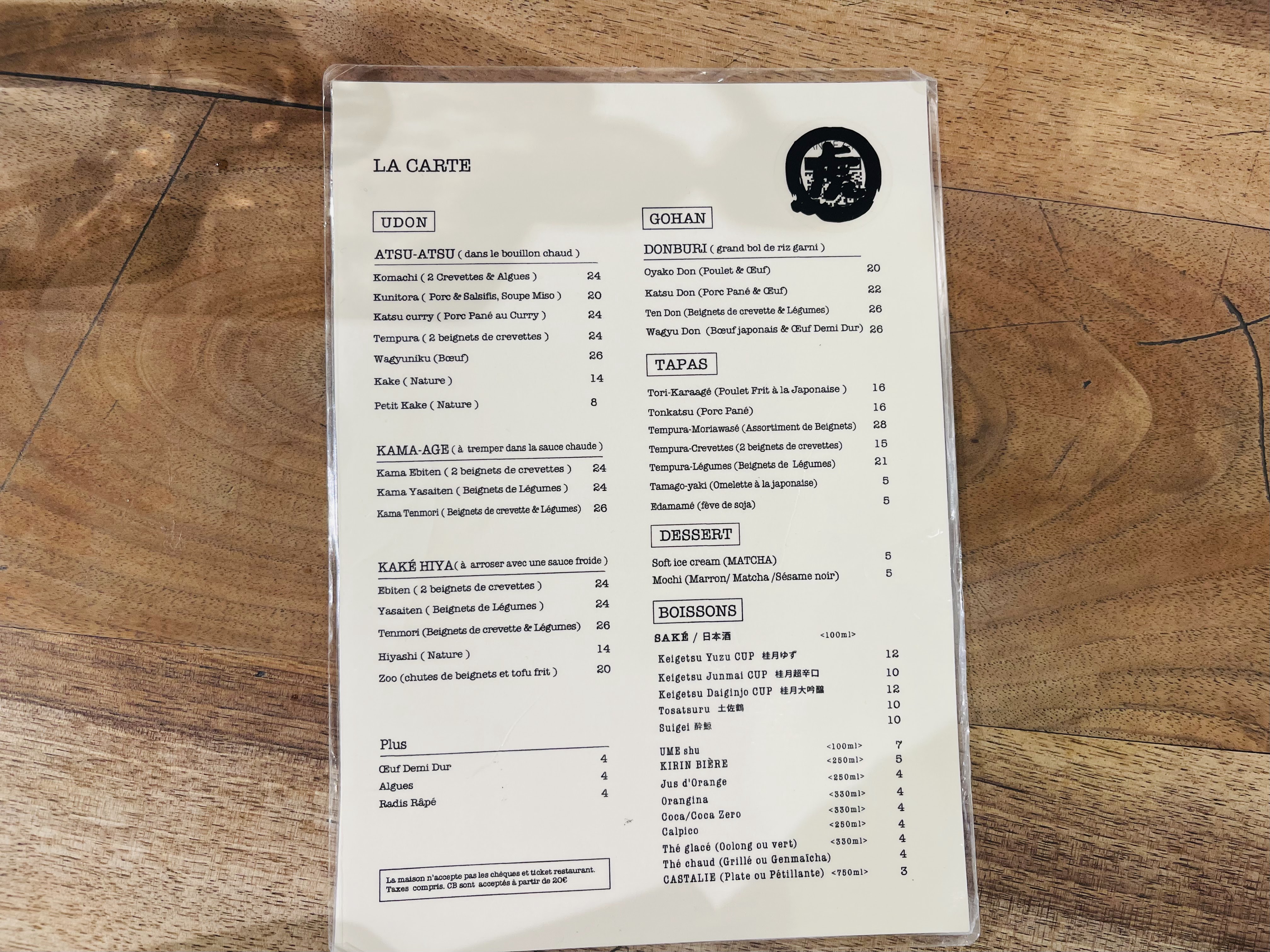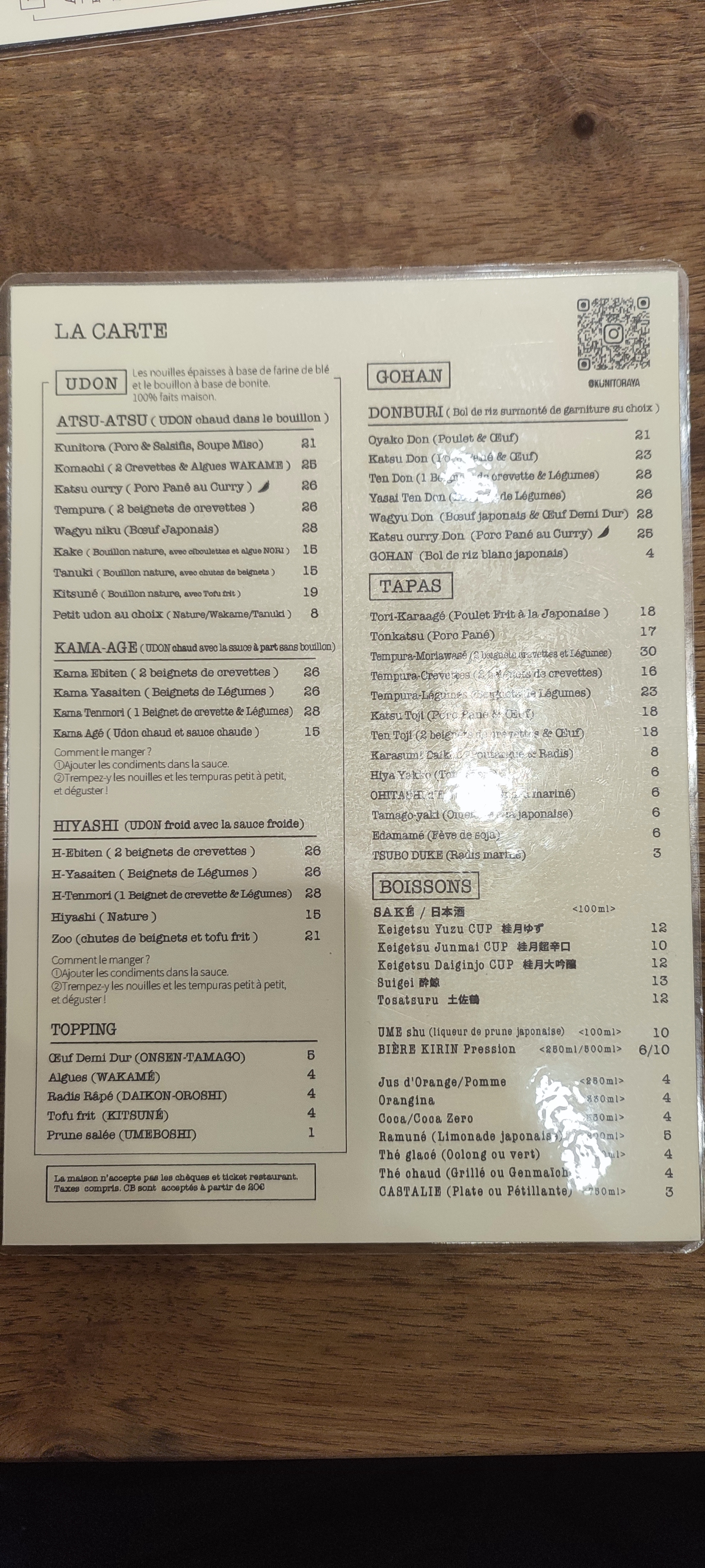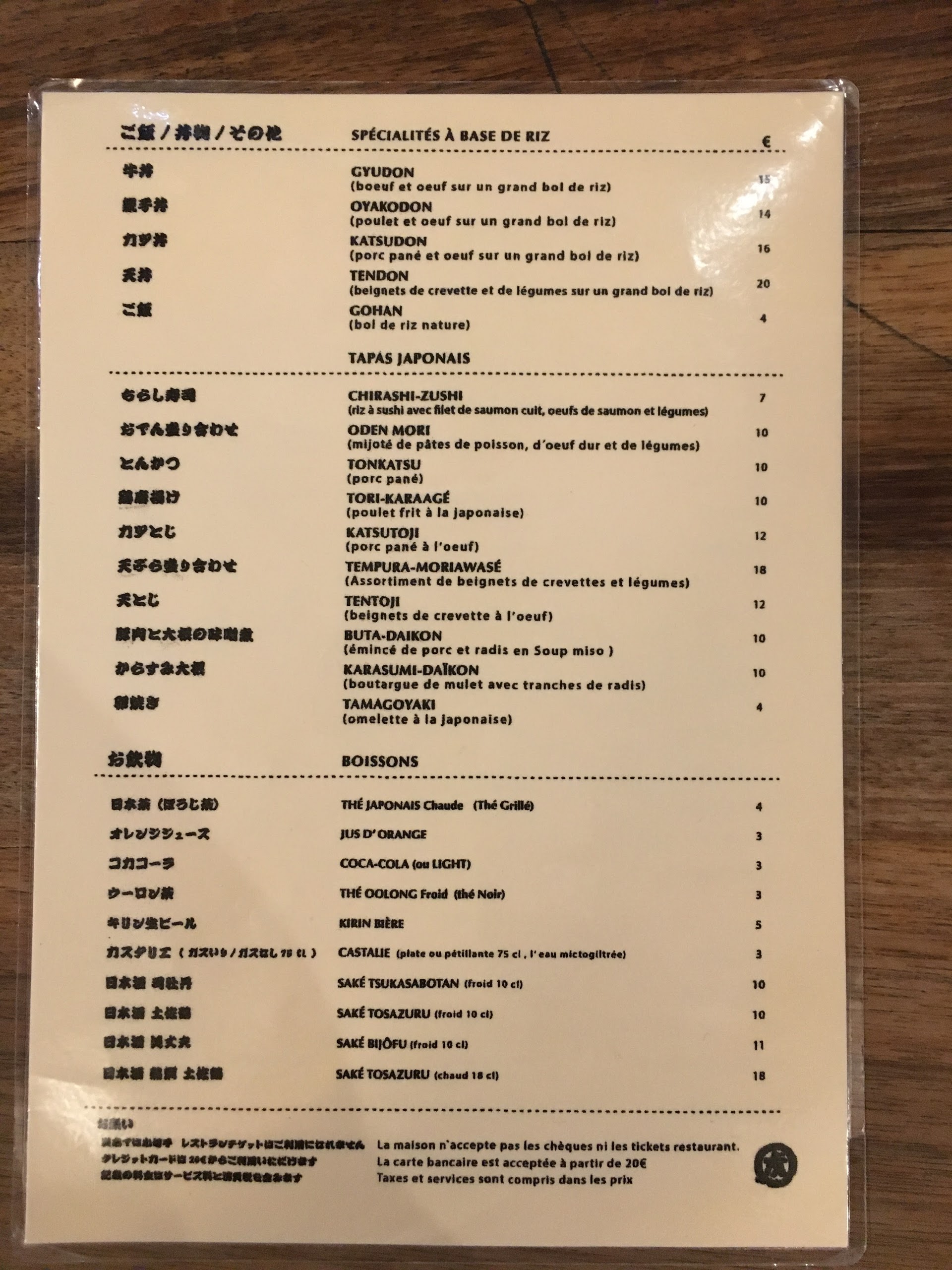 Les Udon sont délicieux cependant le service n’est pas du tout à niveau. Déjà dans la file d’attente a l’extérieur du restaurant avant l’ouverture du soir, la fille ne salue même pas les clients direct « two people? ». Nous avons attendu 30mins avant d’être servis, on a posé la question à la serveuse, elle ne comprends pas très bien le français ni l’anglais. En plus, les touristes à côté de nous à trouvé des cheveux dans leur bol de riz. Dépenses moyen: 20€ +. Concernant les modes de paiement, CB à partir de 20€. Amex JCB non accepté ni ticket restaurant ni carte restaurant. Pour le udon à Paris, je vais rester sur Sanukiya.