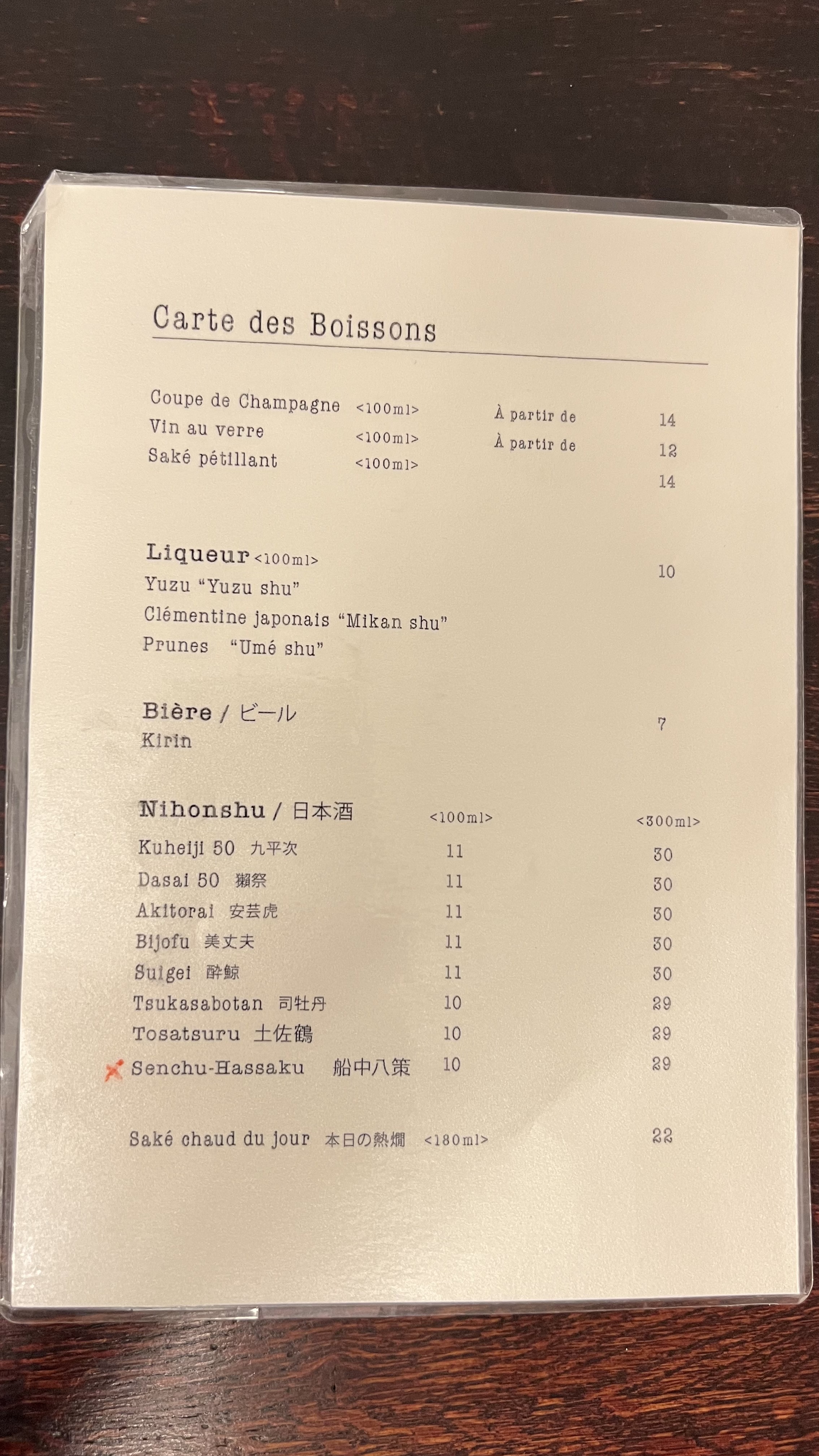 Le menu que nous avions choisit était de 110€ sans boisson par personne En franchissant le seuil de la porte, rien ne justifier le prix élevé que j’allais payer, peut être qu’ils ont tout misé sur les menus? En toute franchise j’étais très déçu par la qualité des plats proposés C’était une cuisine fusion franco/japonaise pas aboutie et terriblement décevante Aucun plat ne m’avait enthousiasmé et pour finir ils nous ont servis des petits bols de udon…..froids!!! Pas de menus pour les végétariens Les prix sont extrêmement élevés ainsi que les boissons alcoolisées C’était un test onéreux que je ne suis pas prêt de récidiver Paroles d’un Chef