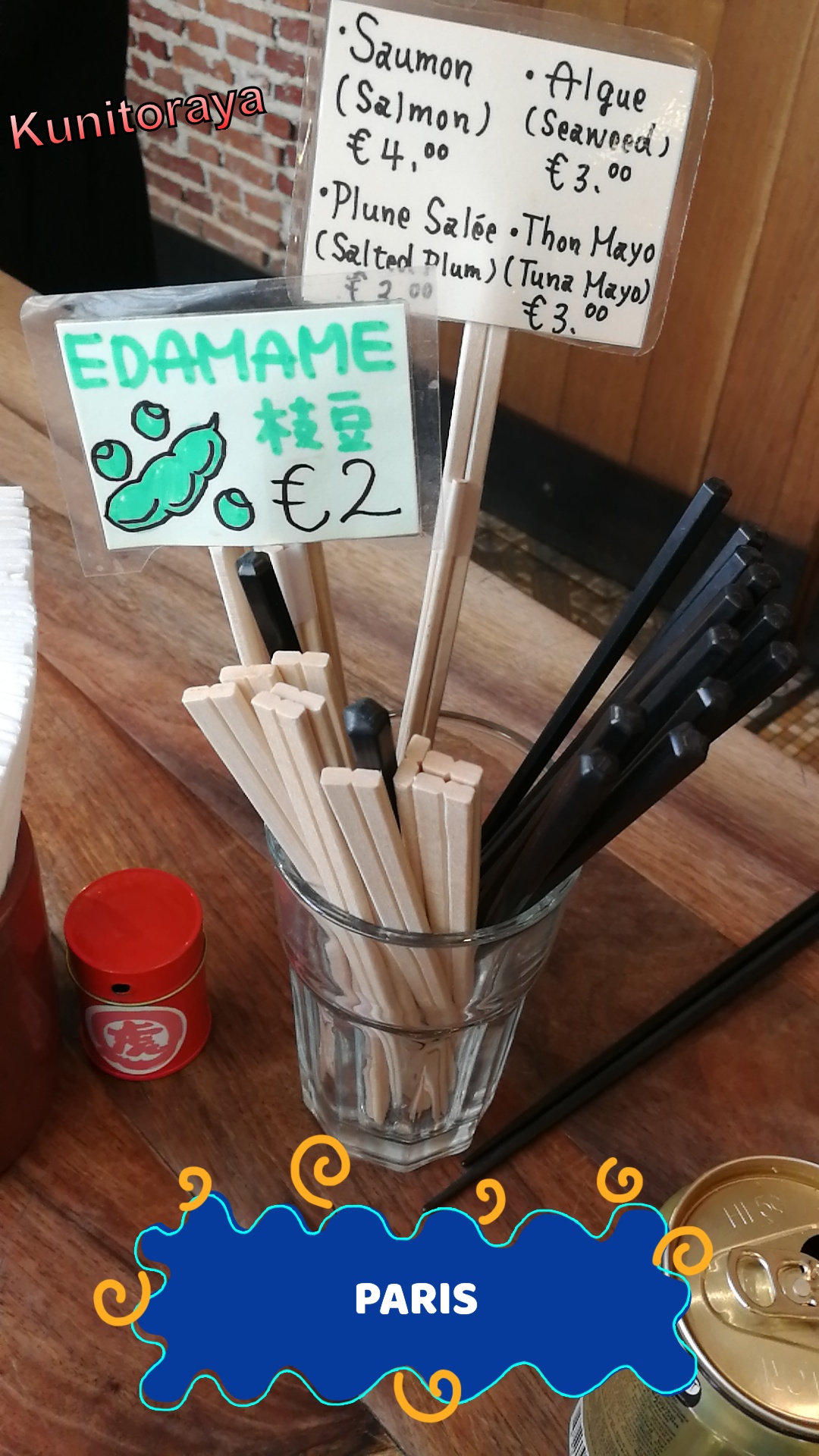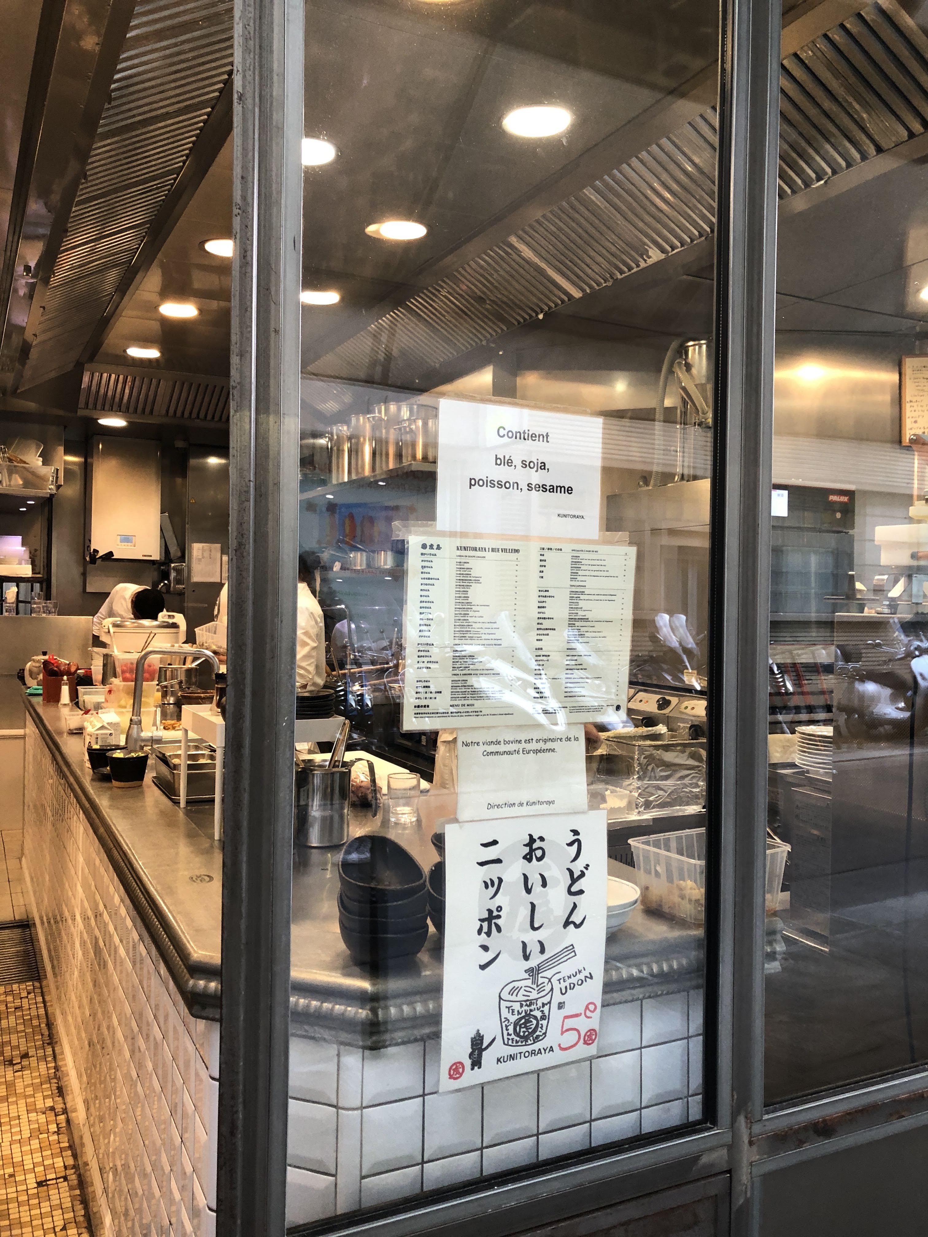 Si vous aimez les cuisines japonaises ici ce sont parmi les meilleures nouilles udon que vous pourrez déguster à Paris: dans un bouillon chaud à assaisonner selon la carte ou froides à tremper dans une sauce froide. Vous avez également un menu du midi et pleins de petits plats délicieux style tapas mais typiquement japonais à découvrir. Eau, thé grillé ou bière japonaise à la tireuse et saké bien sûr accompagnent le repas. Comme pour tout bon restaurant de ce genre, il faut respecter de faire la queue à l'extérieur sous les stores et lampes chauffantes en attendant votre tour. Vous aurez mérité une place au coude à coude sur des tabourets en bois autour de grandes tables communautaires ou le long de comptoirs en vitrine où l'équipe toujours très efficace vous place et prends votre commande en suivant. N'essayez pas de réserver et encore moins d'essayer d'avoir un coupe file à part celui de venir en début de service pour un superbe voyage dans un restaurant d'udon de quartier comme au Japon. Si vous voulez une expérience gastronomique de la cuisine japonaise, vous avez l'excellent grand frère un peu plus loin dans la rue Villedo.