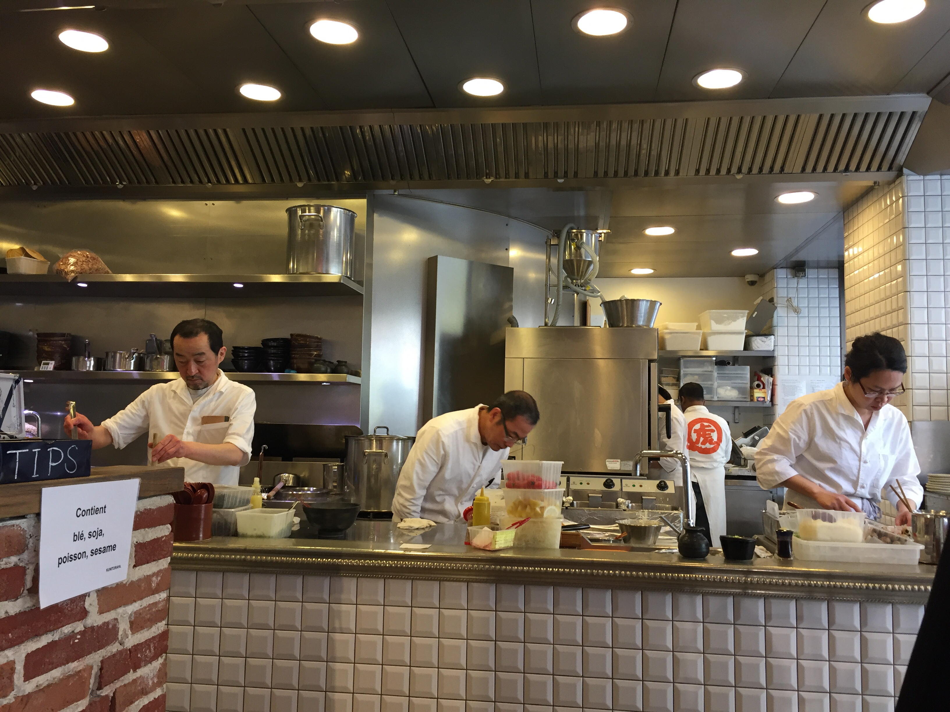 Les meilleurs udons de Paris. Tout simplement. Top personnel : udons froids à tremper dans le bouillon froid et quelques frisures de beignets par dessus. On pourra dire 'un peu cher pour des nouilles' (12/15€), surtout vu les nombreuses cantines Japonaises du quartier. Mais ca n'est vraiment pas volé. Simplement très bon. L'endroit est agréable. Plein de vieilles pierres. On y mange un peu les uns sur les autres sur de petites tables ou au bar. Mais c'est convivial. Le lieu est connu des locaux et des touristes. Prévoyez 15/20mn d'attente le soir en période haute. A noter le second restaurant du chef dans la même rue, quelques numéros plus loins. Plus gastronomique, compter 70/100€ pour le menu du soir.