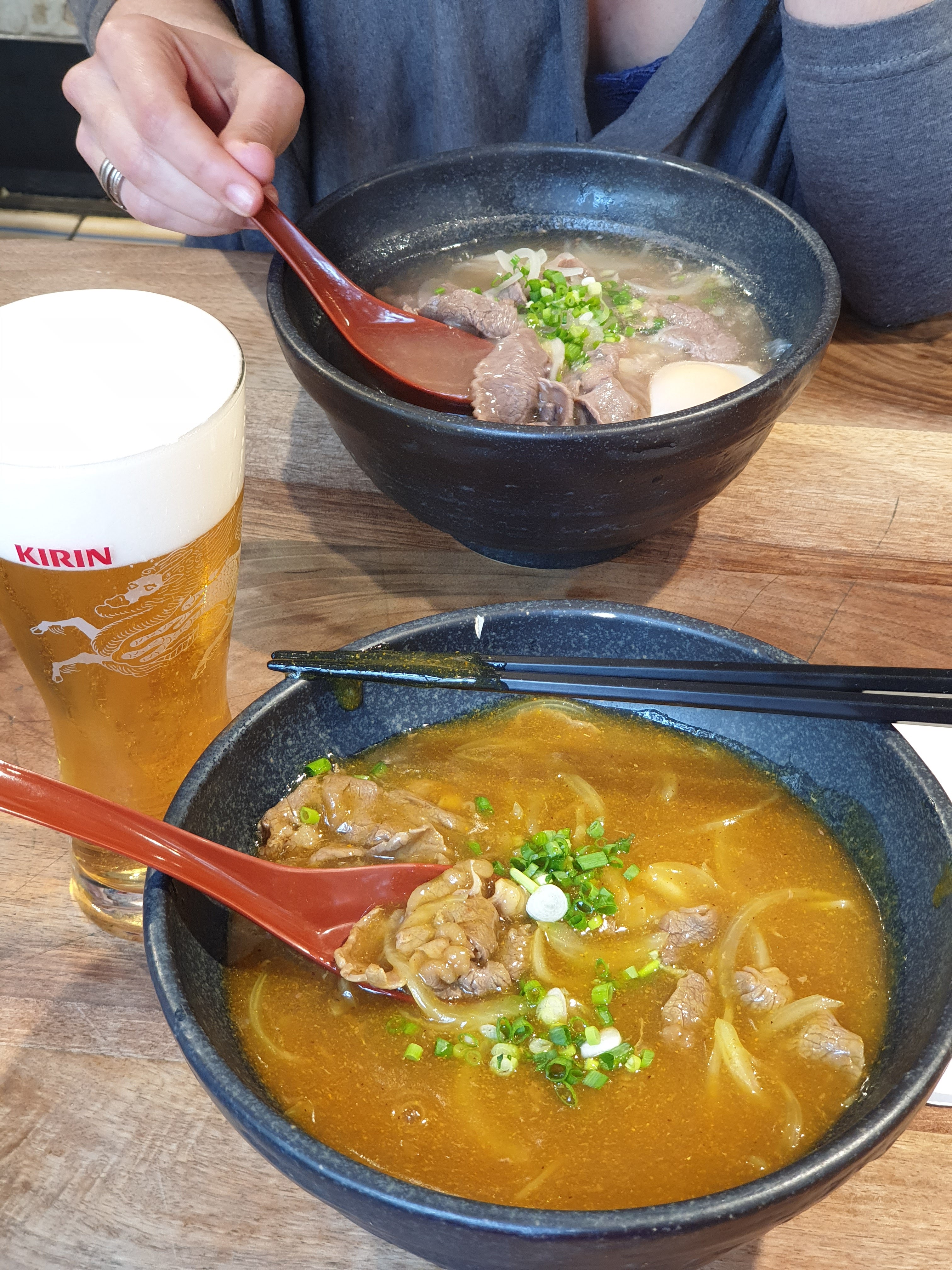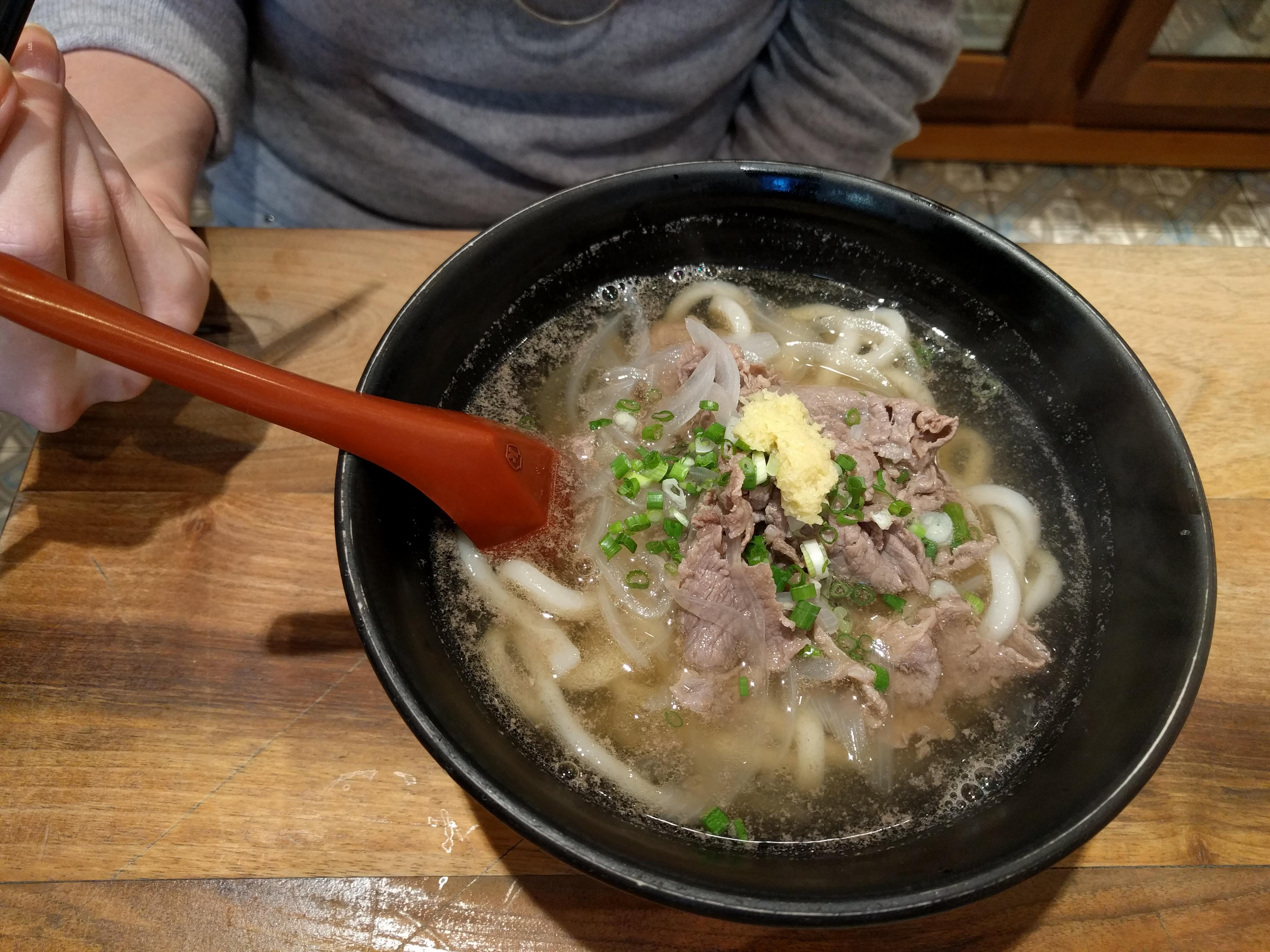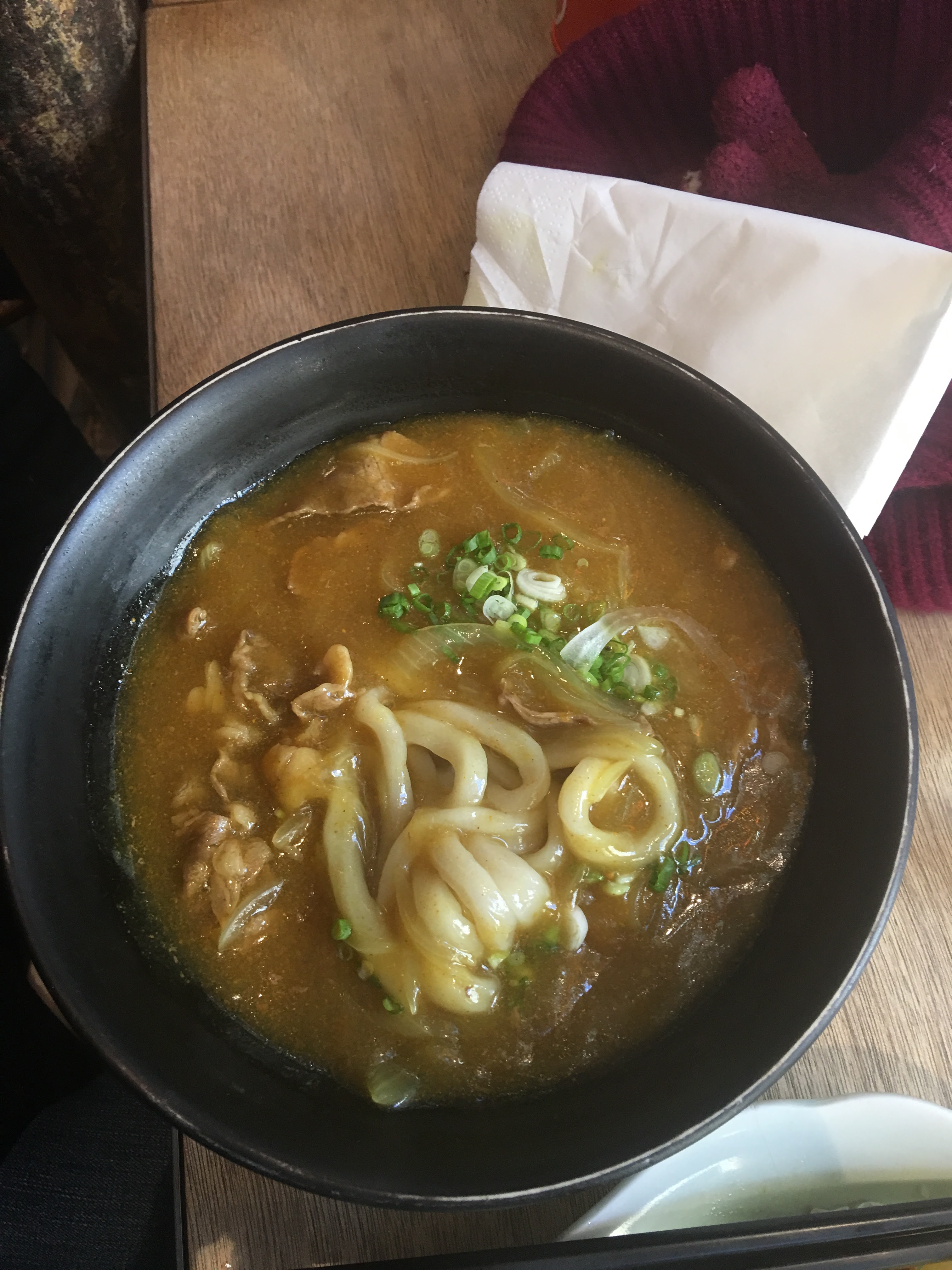 Le udon au curry est délicieux mais un peu cher (20 euros) Le demi de Kirin à 4 ou 4,5 (je ne sais plus), ce n'est pas donné non plus. J'y suis allé sans devoir faire la queue mais je ne la ferais pas pour y retourner