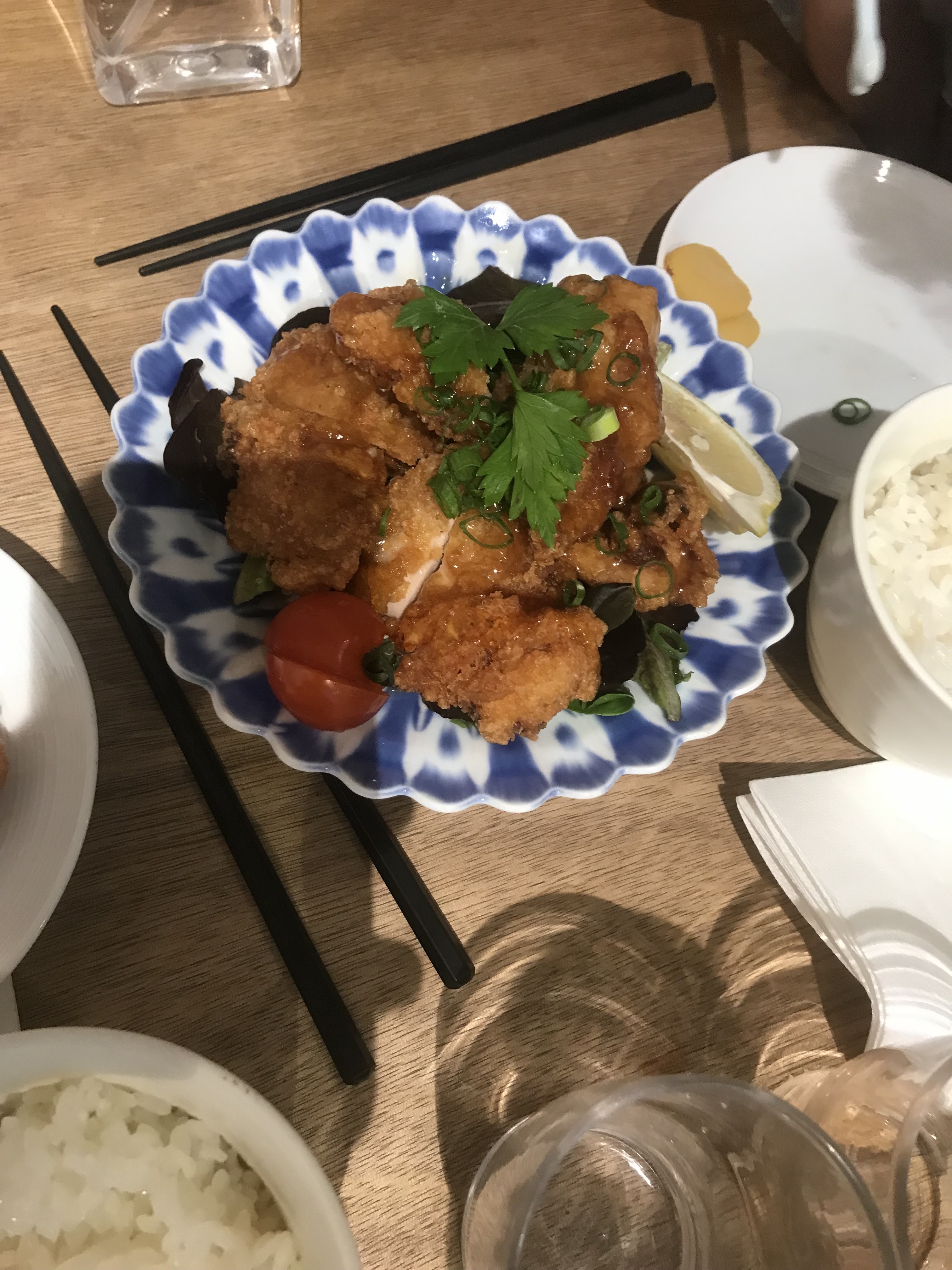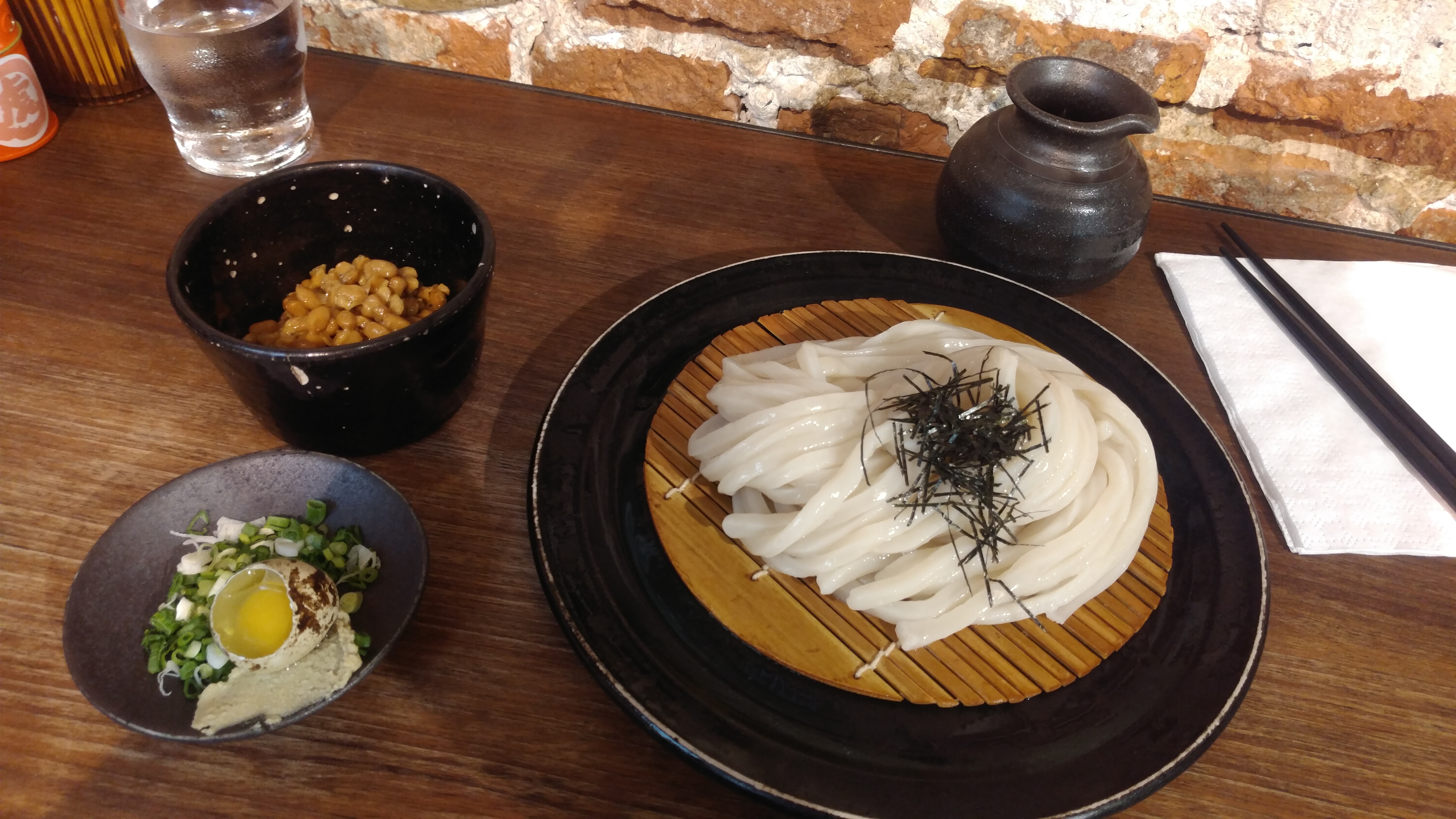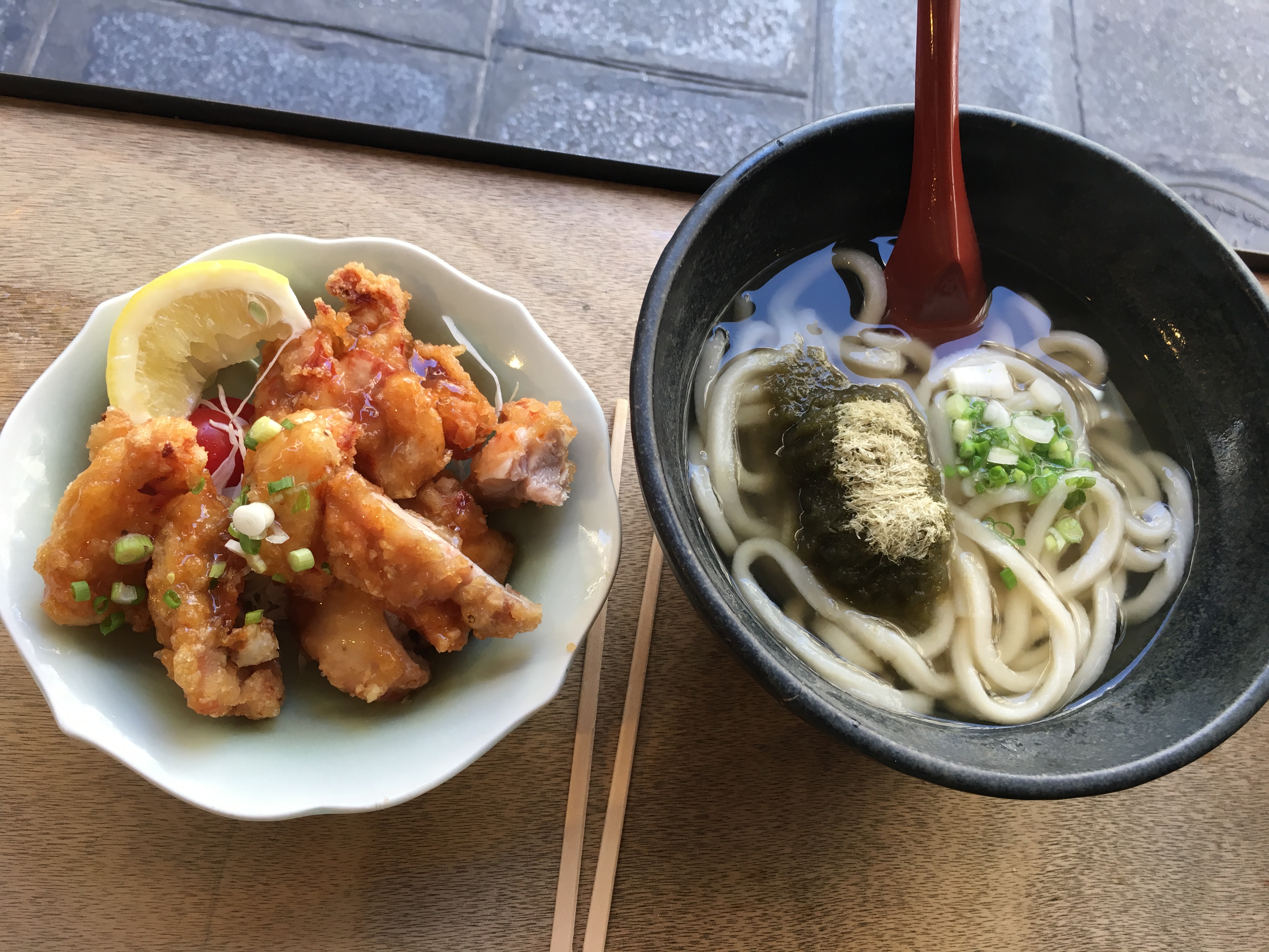 Victime de son succès, nous sommes arrivés vers 13h et avons patienté 45 min. Pourtant, il y avait des places disponibles mais je pense que les serveuses étaient tellement occupées qu’elles faisaient comme elles pouvaient. Nous avons choisi des tapas japonais (omelette et poulet fris) et des soupes de udon (crevette et algues). C’était simple, sain et delicieux. Certes, un peu cher mais c’est le prix de la qualité.