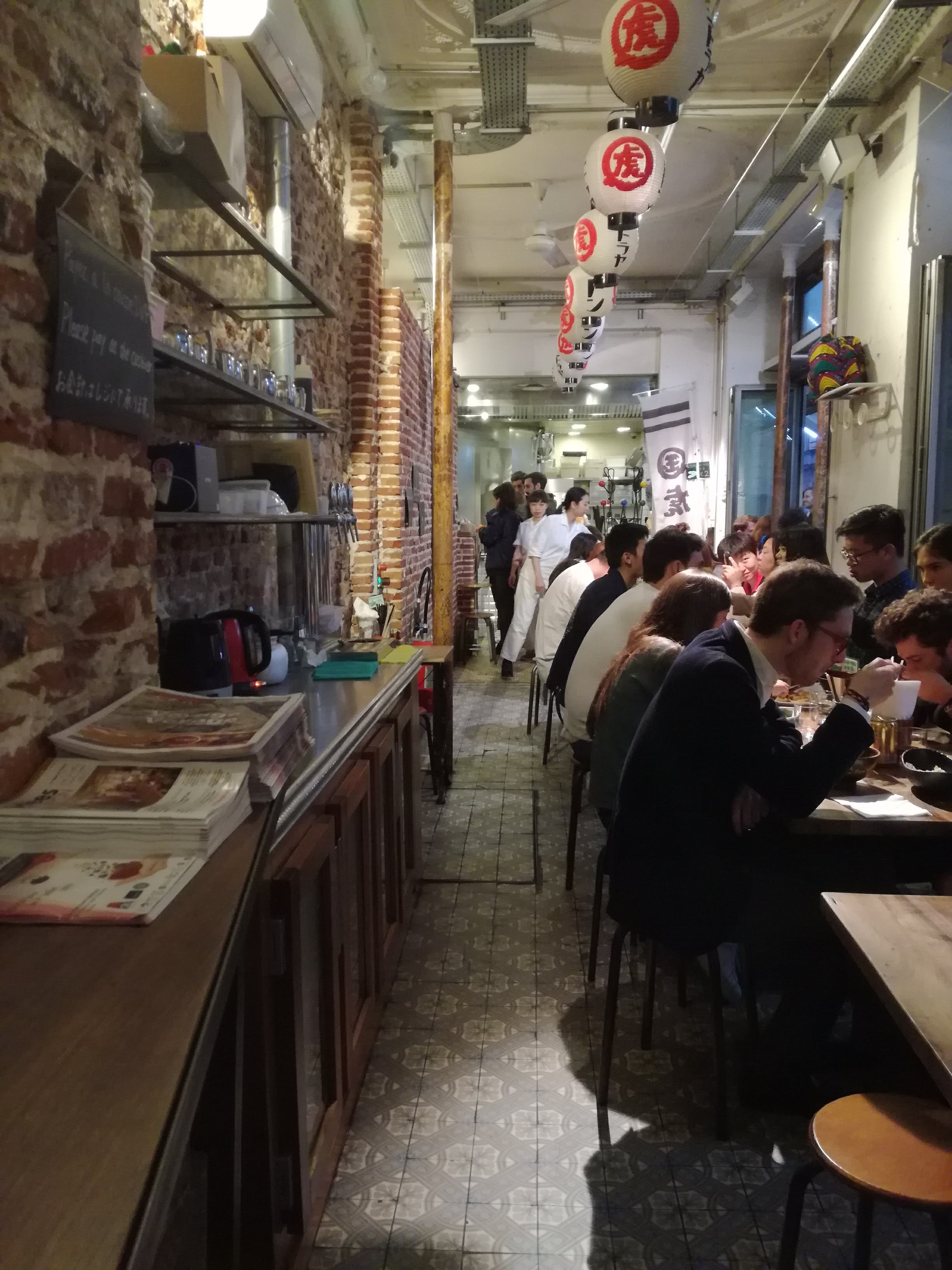 Très bonne cantine japonaise, le lieu est exiguë mais sympa avec le mur en brique et les moulures au plafond. Service agréable mais tarifs un poil élevés (udon de 16€ à une vingtaine d’euros). Il y’en a des tout aussi bons dans le quartier.