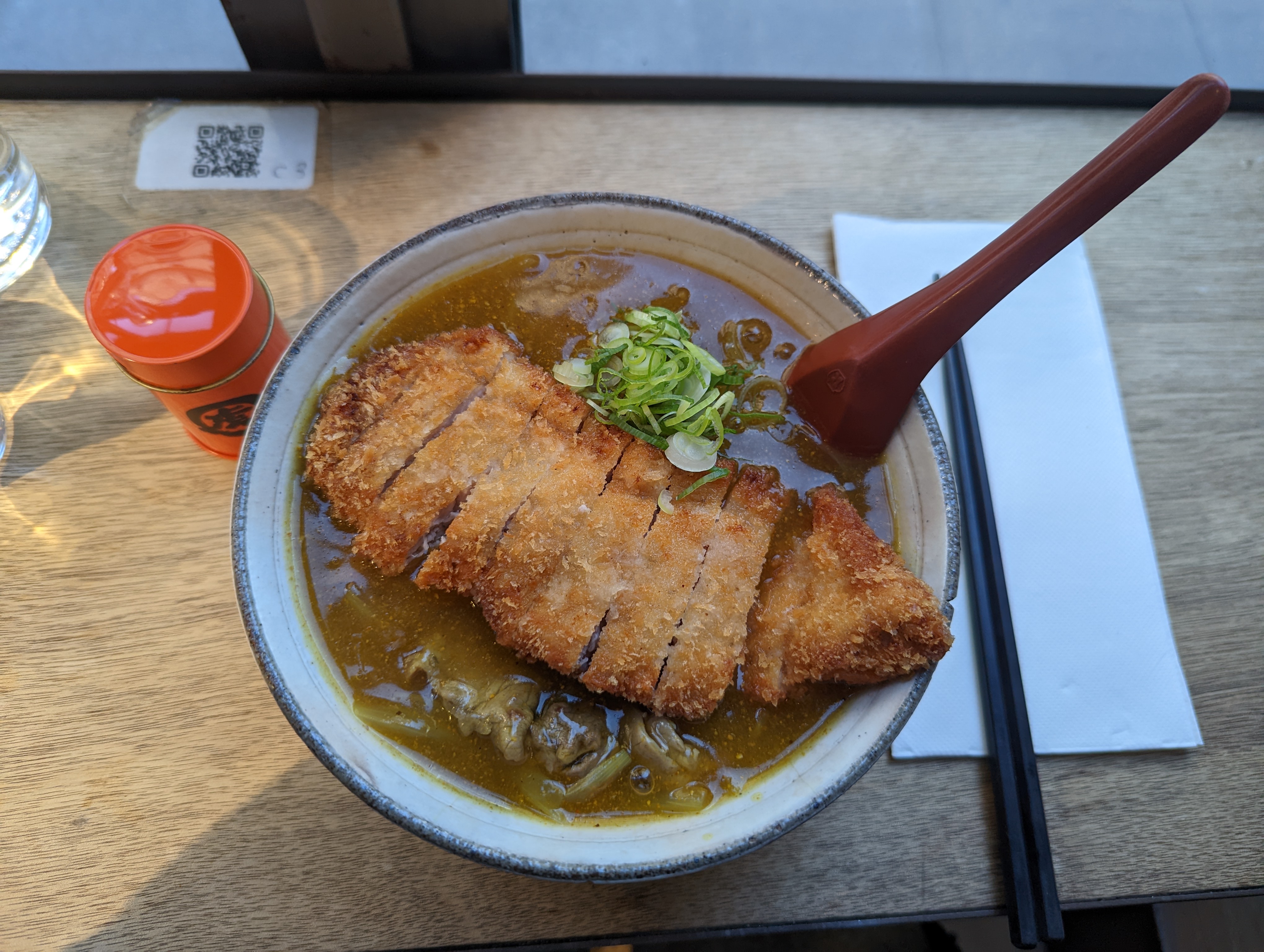Je ne peux malheureusement pas recommendé ce restaurant a cause du prix. Mais a 26 euros cette soupe curry pork katsu est bien trop chère par rapport a ce qui se trouve ailleurs. Ça n’a pas de sens. Autrement cette soupe n’était pas trop mal, Mais bien trop chaude (si si j’ai découvert que c’était possible).