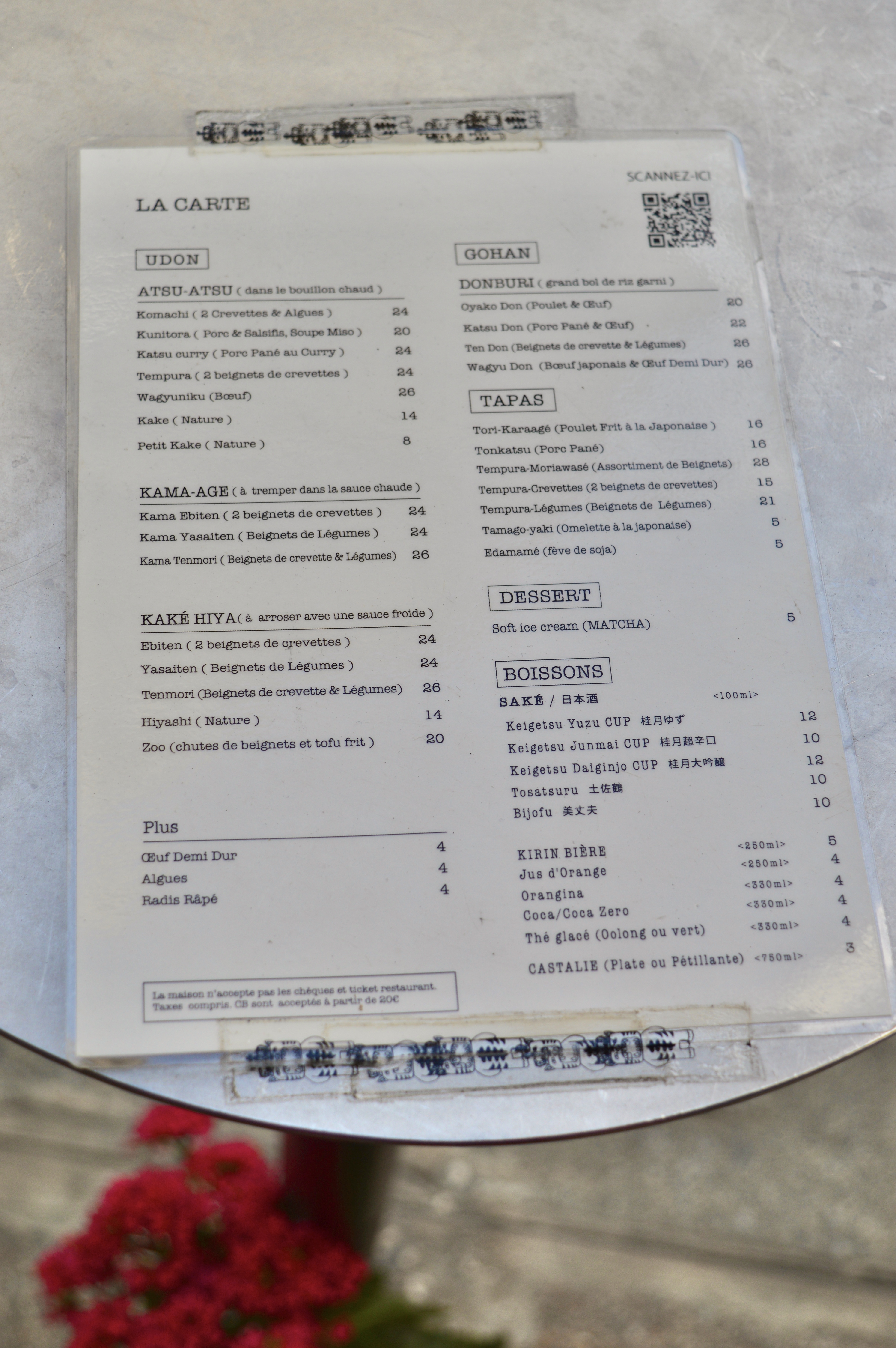 Toujours très heureuse de me rendre dans ce restaurant. Service impeccable, plat délicieux ! Toujours penser à s’y rendre tôt, car une queue se forme très vite ! Petit point en moins par contre sur le paiement : les tickets restaurant sont pas acceptés. Udon tempura : 20€